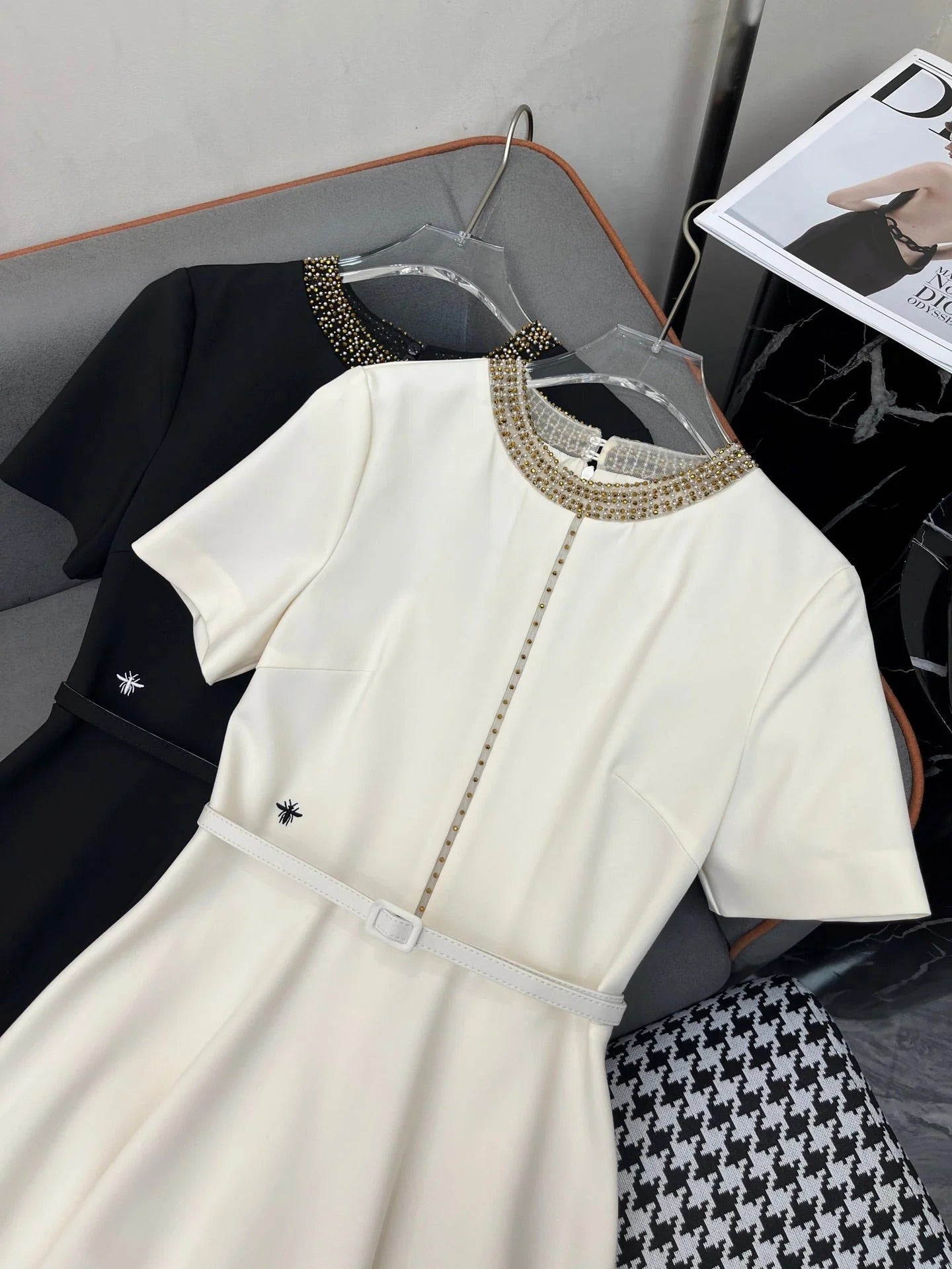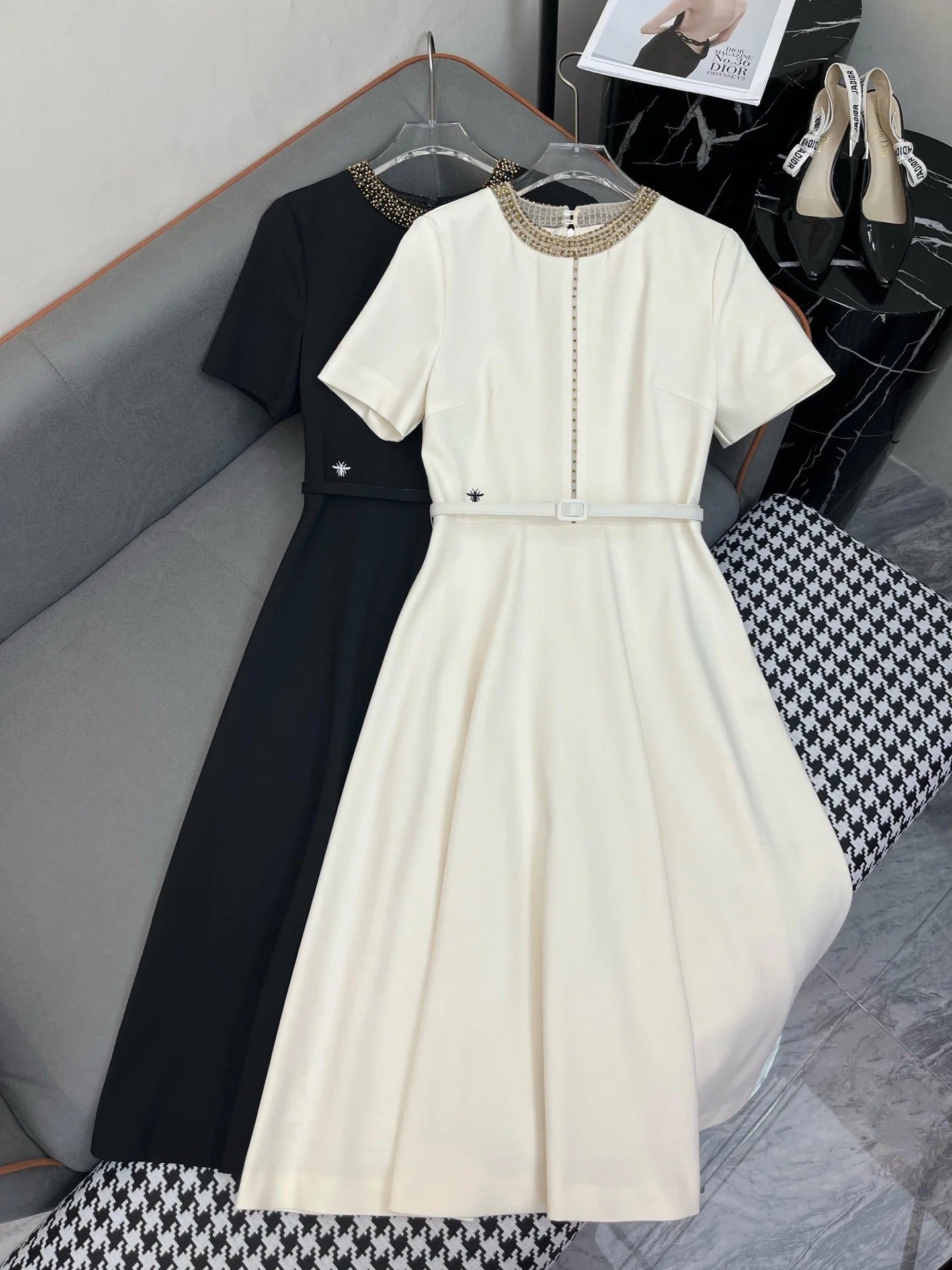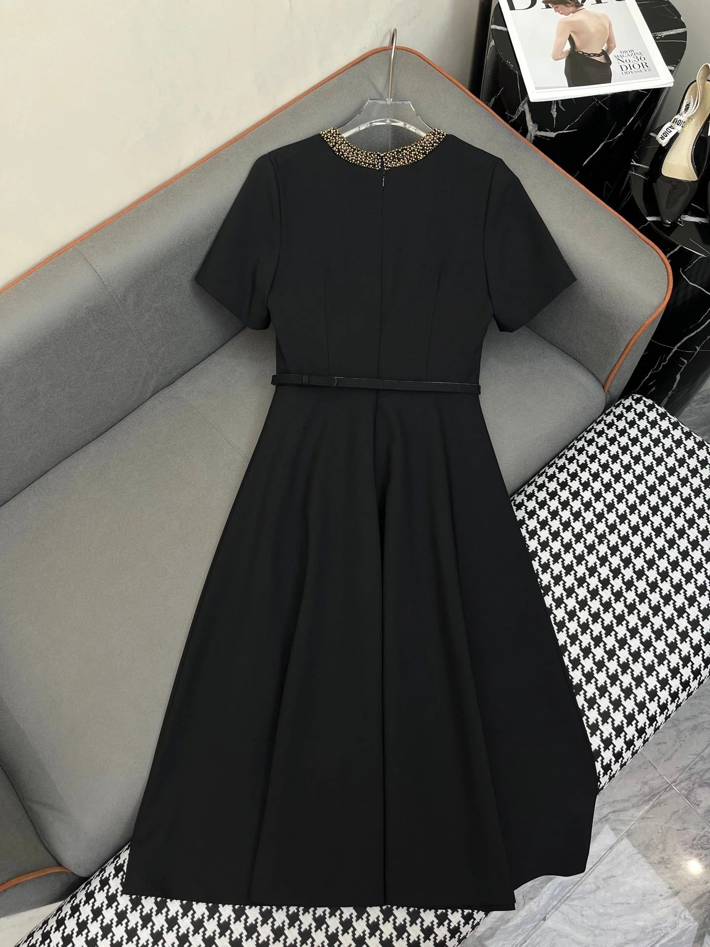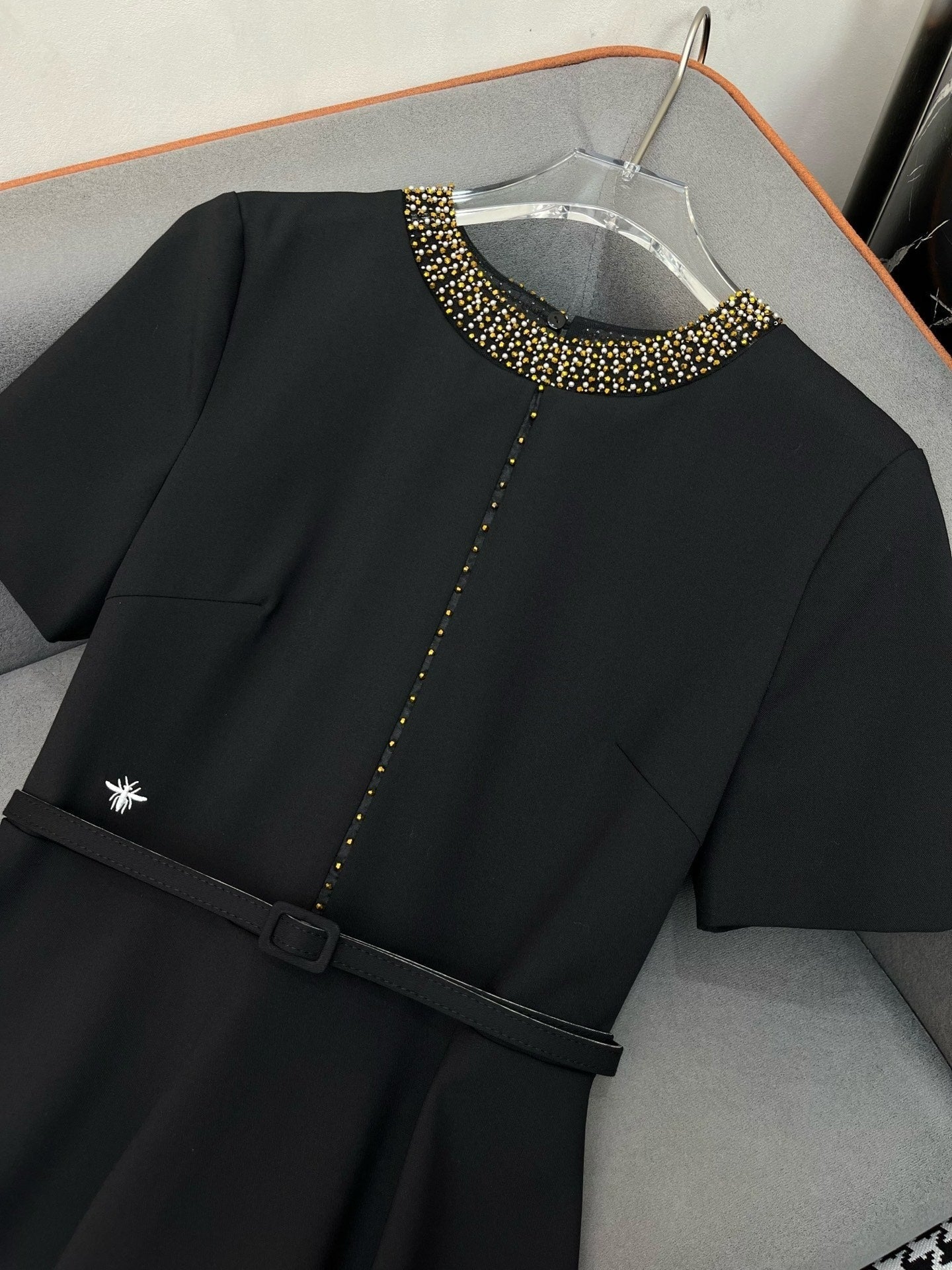 DIOR DRESS WITH BELT AND METAL-EMBELLISHED COLLAR 219281
