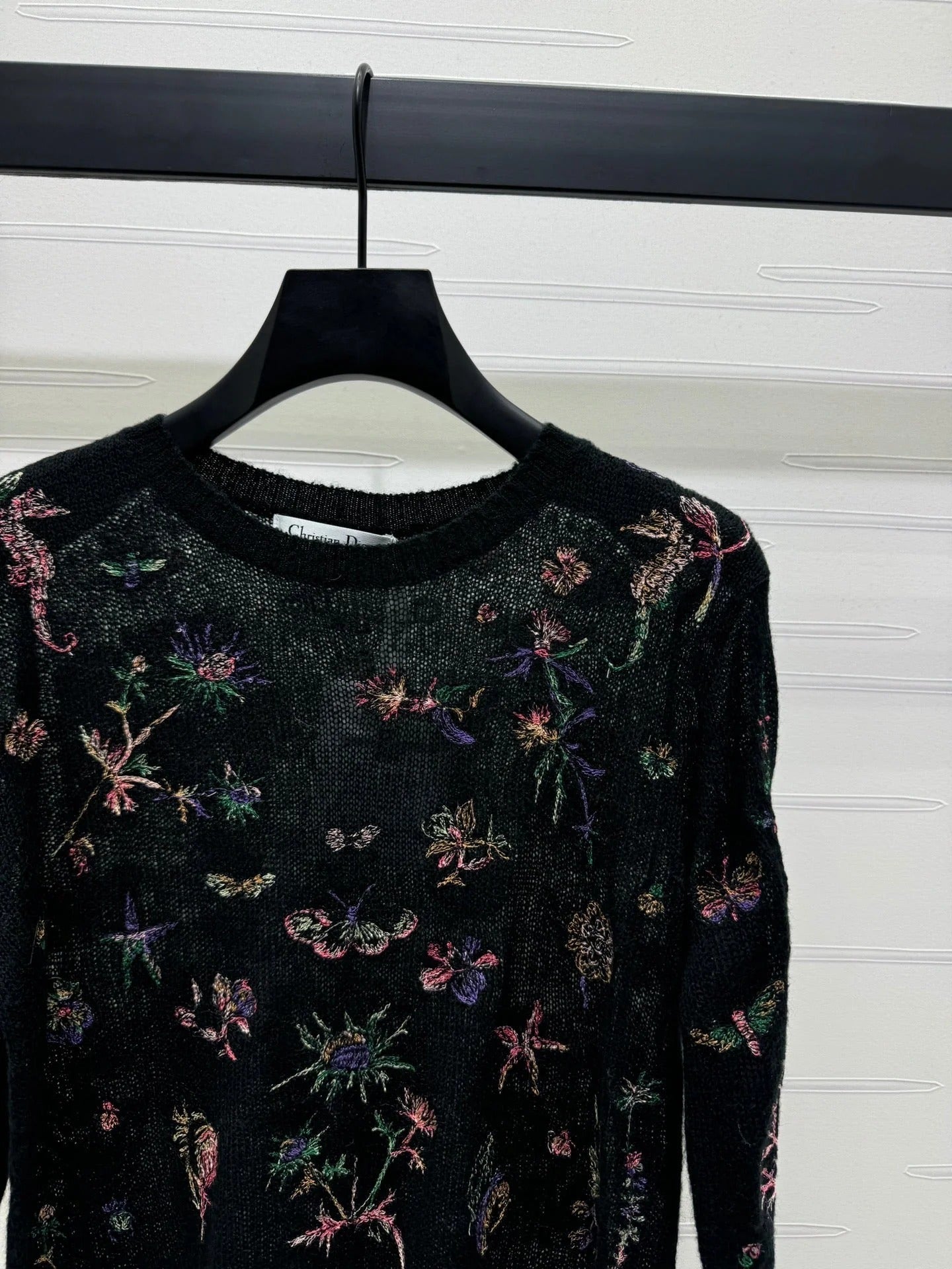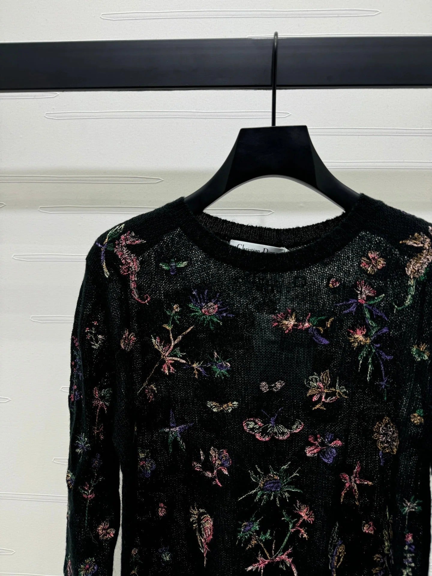 DIOR FLORAL EMBROIDERED KNITTED LONG-SLEEVE TOP 276695