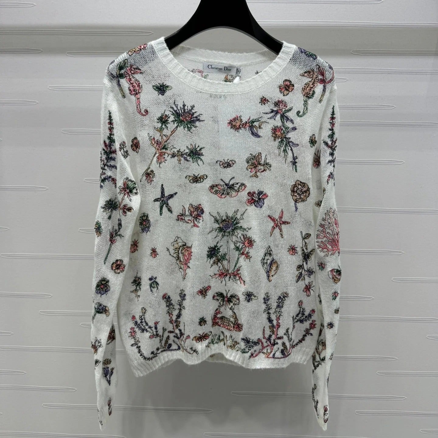DIOR FLORAL EMBROIDERED KNITTED LONG-SLEEVE TOP 276696