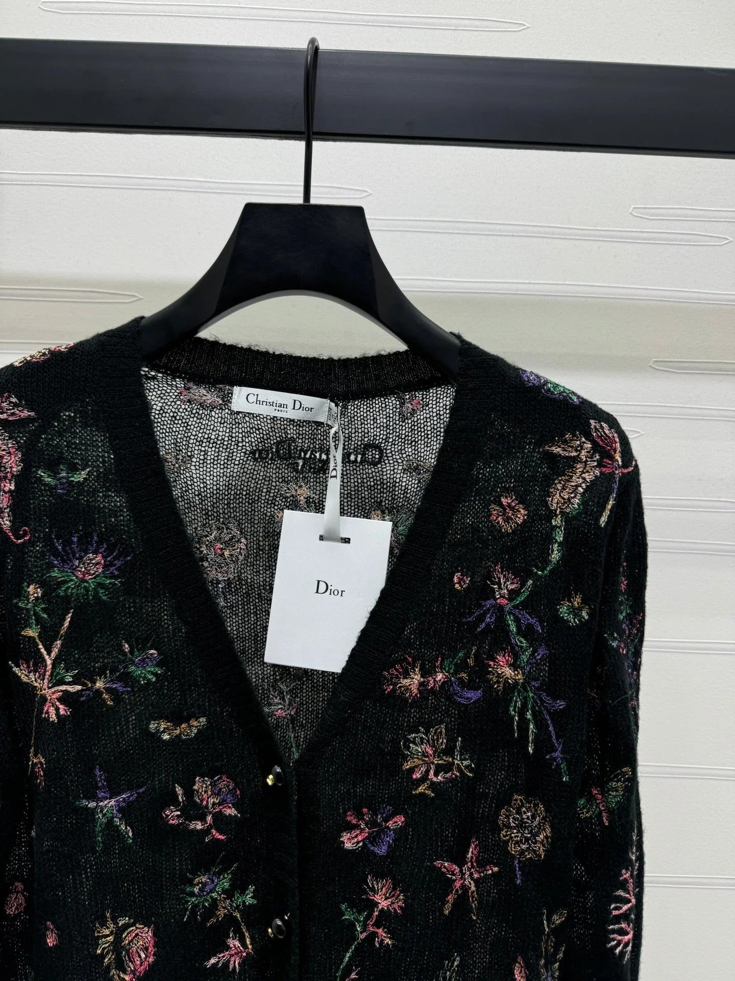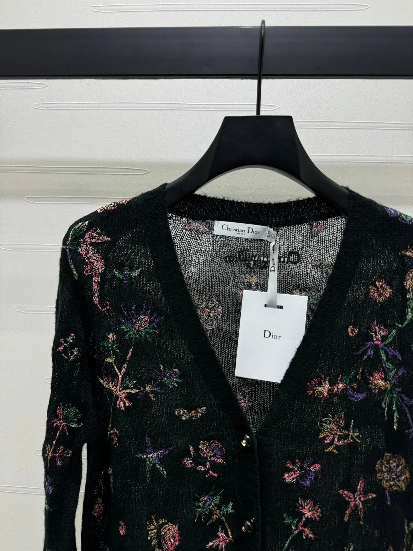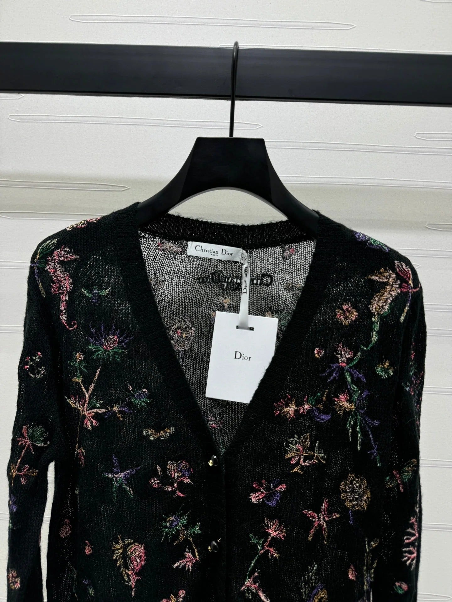 DIOR KNITTED V-NECK FLORAL EMBROIDERED CARDIGAN 276698