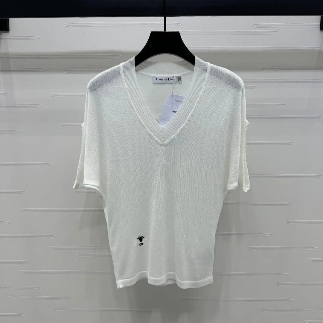 DIOR V-NECK KNITTED SHORT-SLEEVE T-SHIRT WHITE 274934
