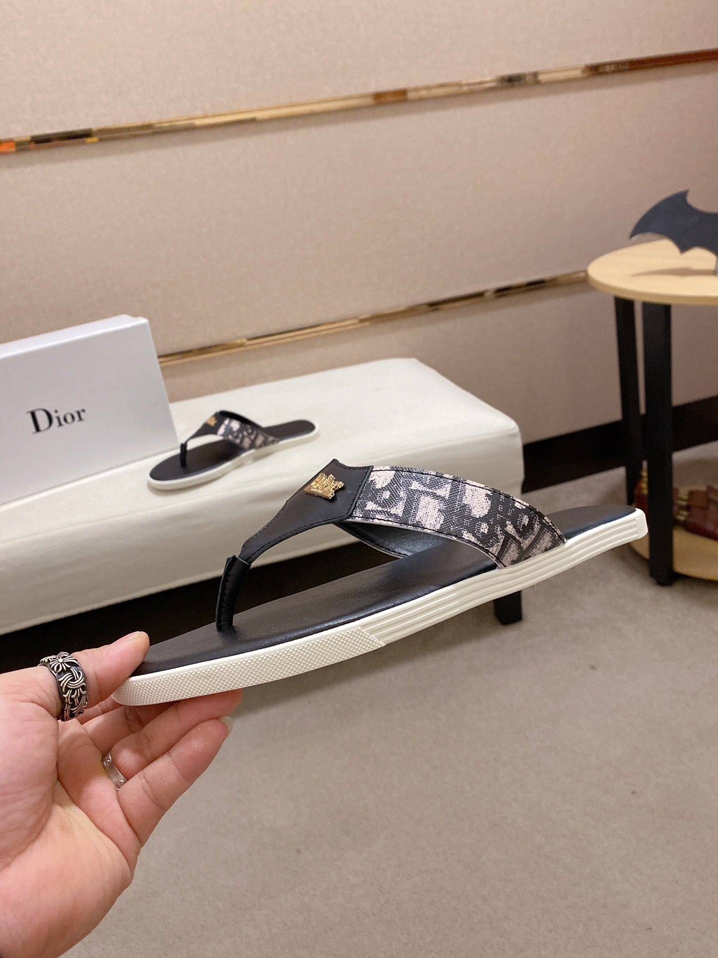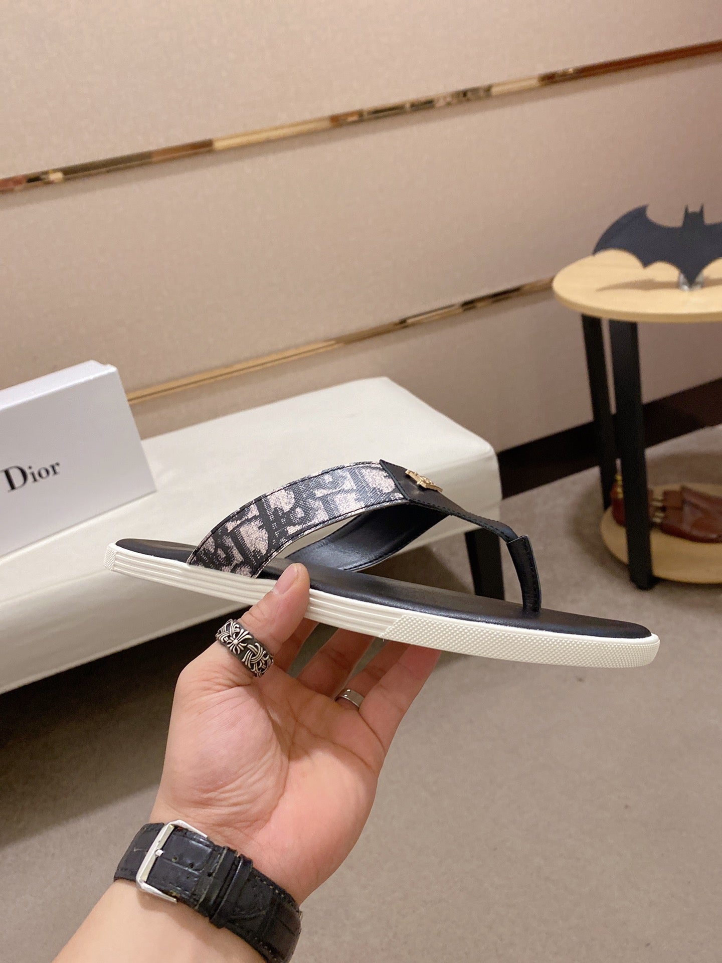 CD ALIAS THONG SANDAL BLACK CALFSKIN