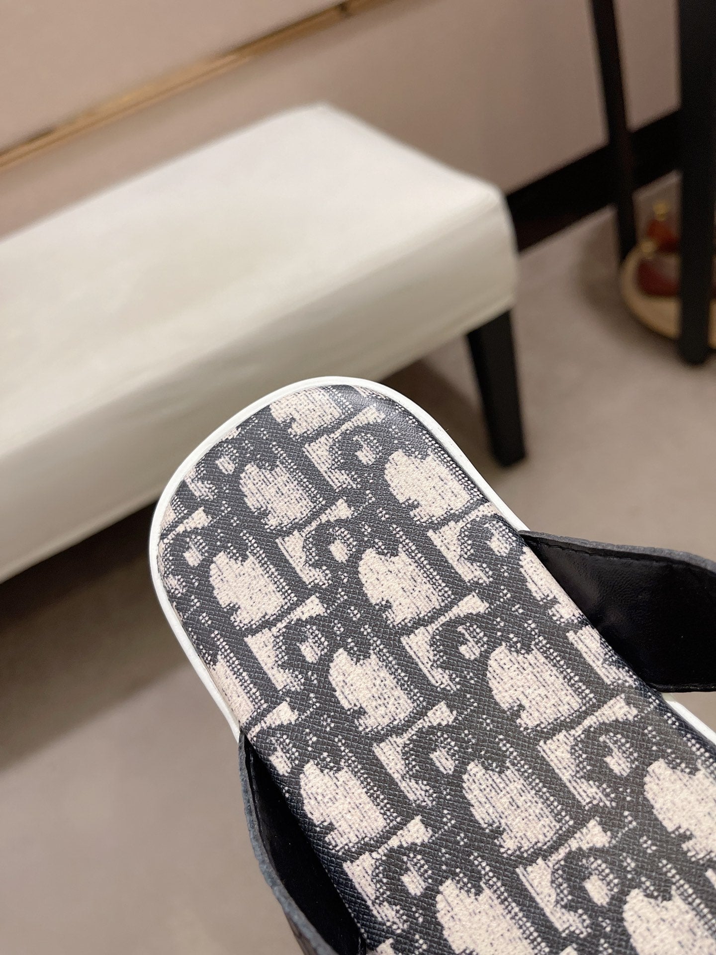 CD ALIAS THONG SNAKE MOTIF BLACK AND BEIGE CALFSKIN