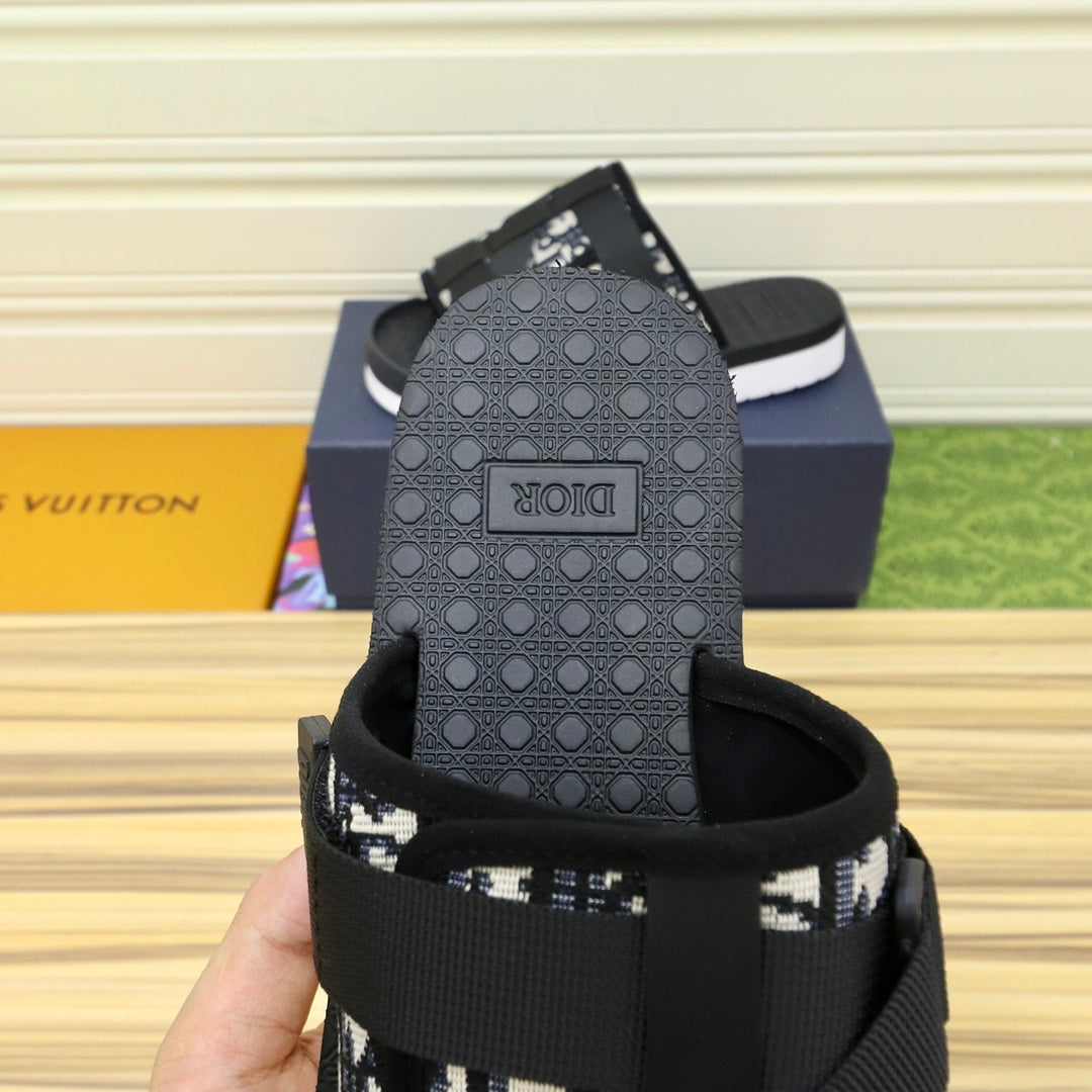 CD ALPHA SANDAL BLACK AND BEIGE JACQUARD