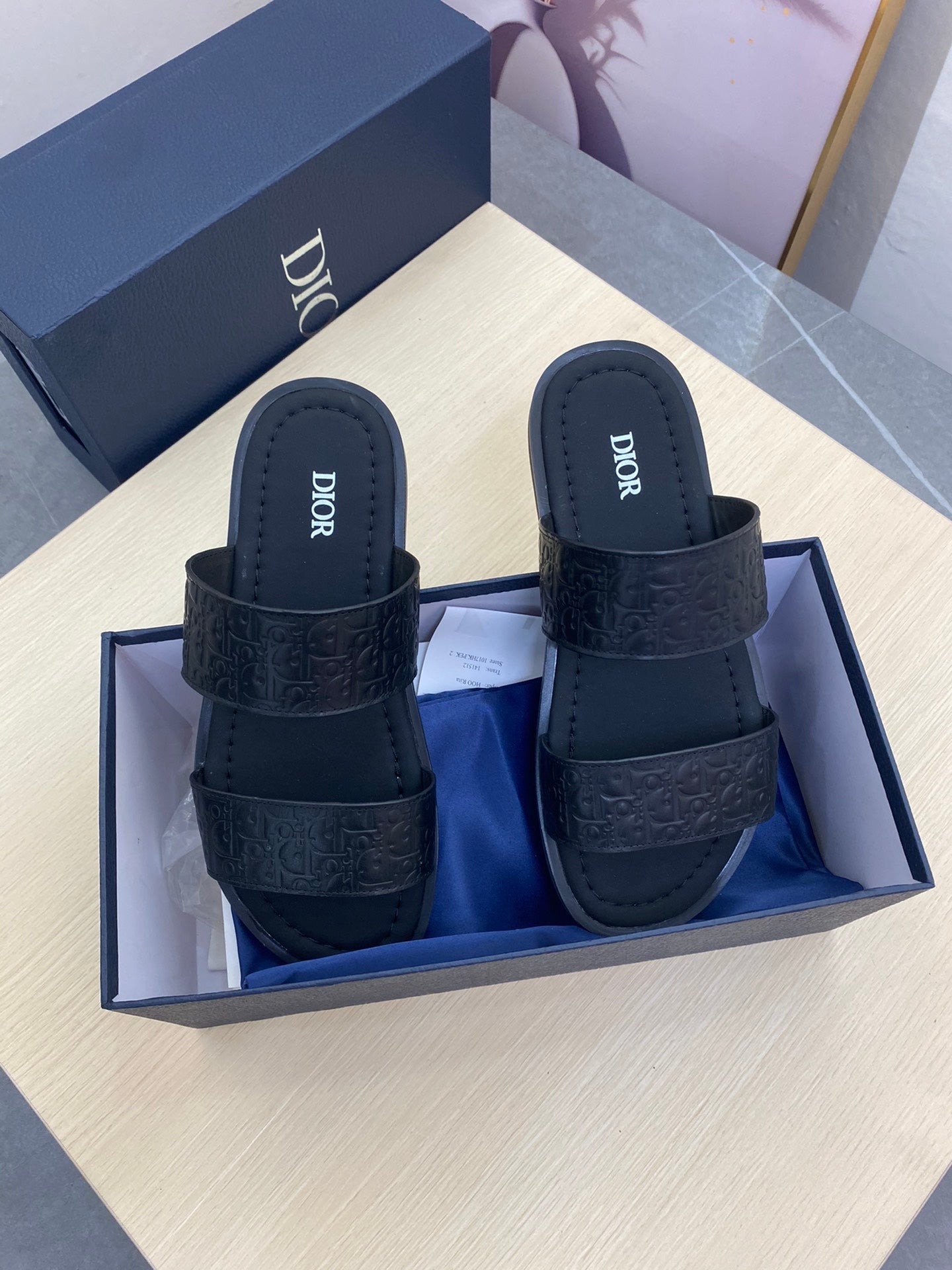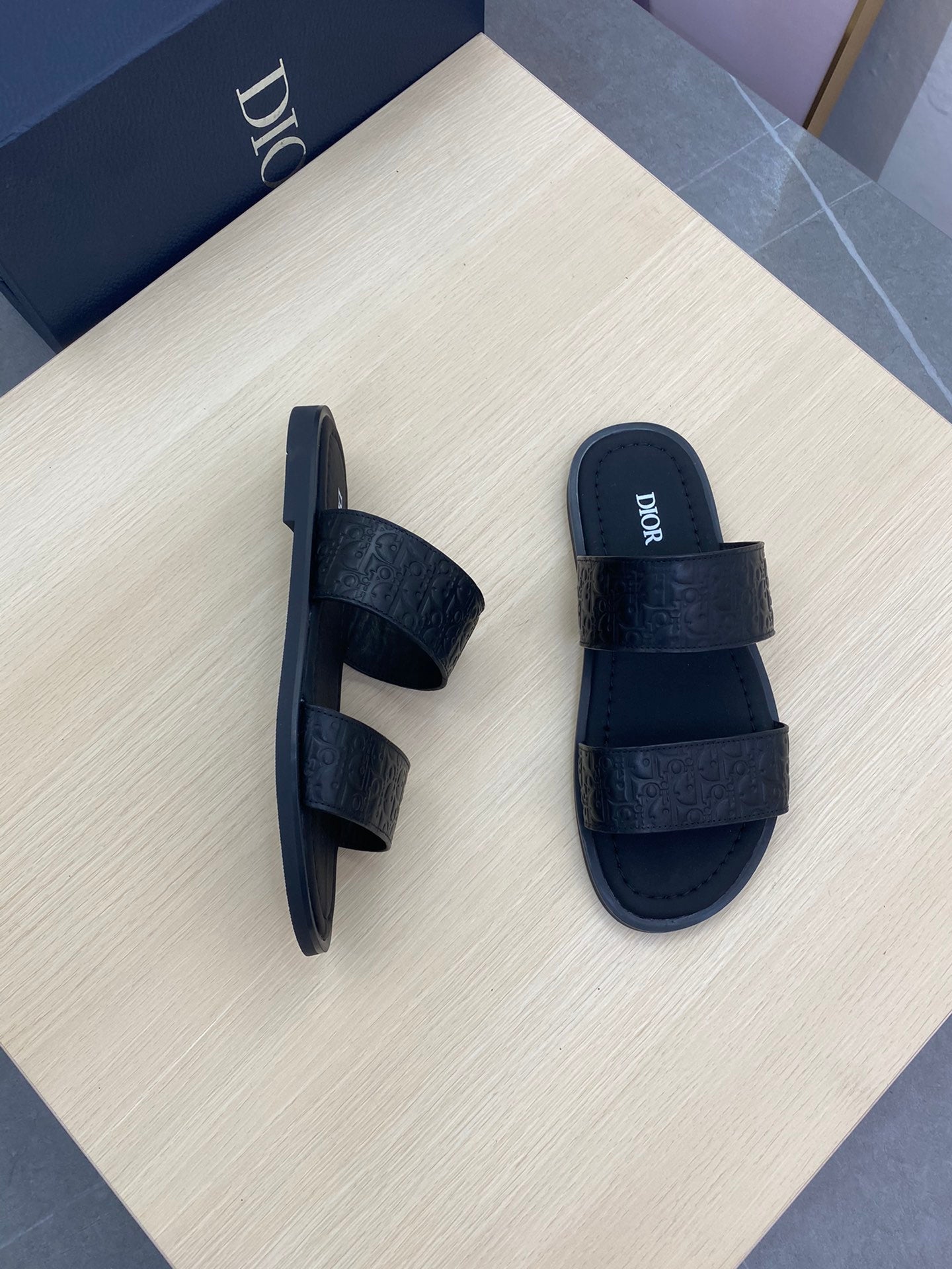 CD DOUBLE STRAP SLIPPER BLACK MONOGRAM CALFSKIN