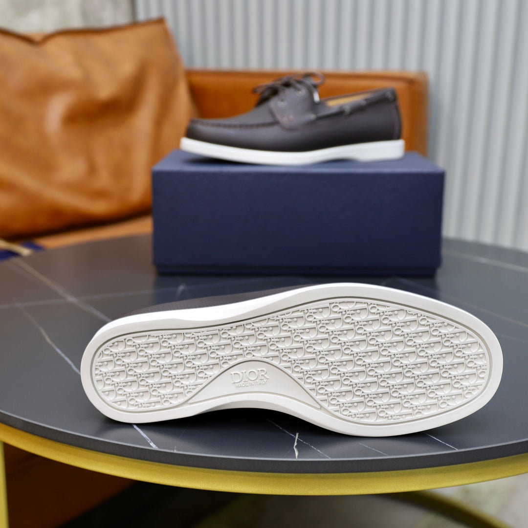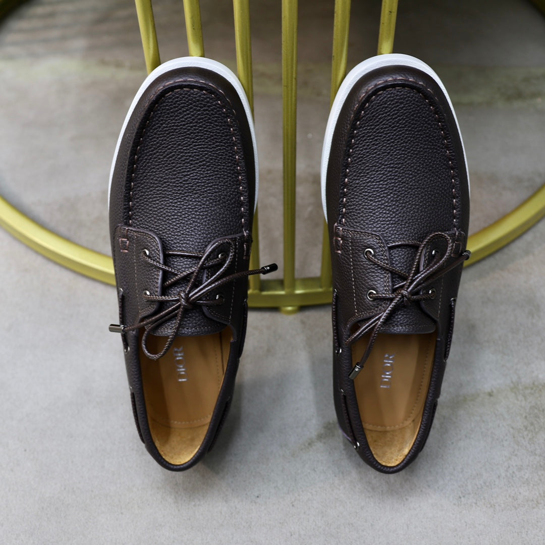 CD GRANVILLE BOAT SHOE DARK BROWN GRAINED CALFSKIN