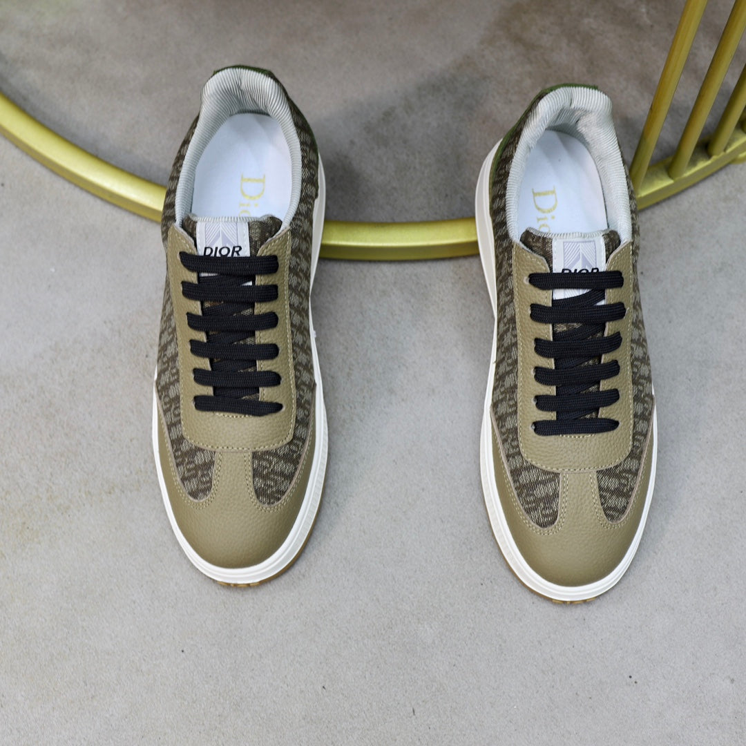 CD HOMME SNEAKERS OLIVE CALFSKIN AND JACQUARD