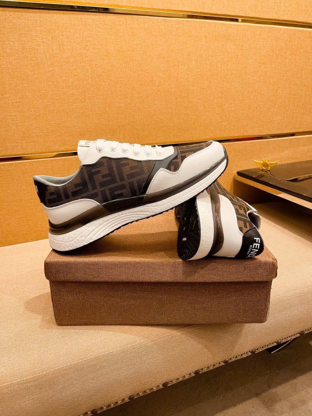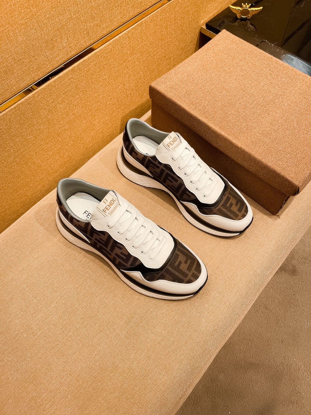 CD SALVATORE FERRAGAMO SNEAKER WHITE AND BROWN JACQUARD