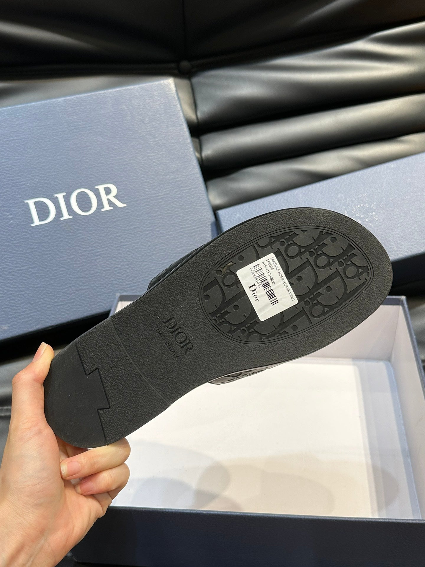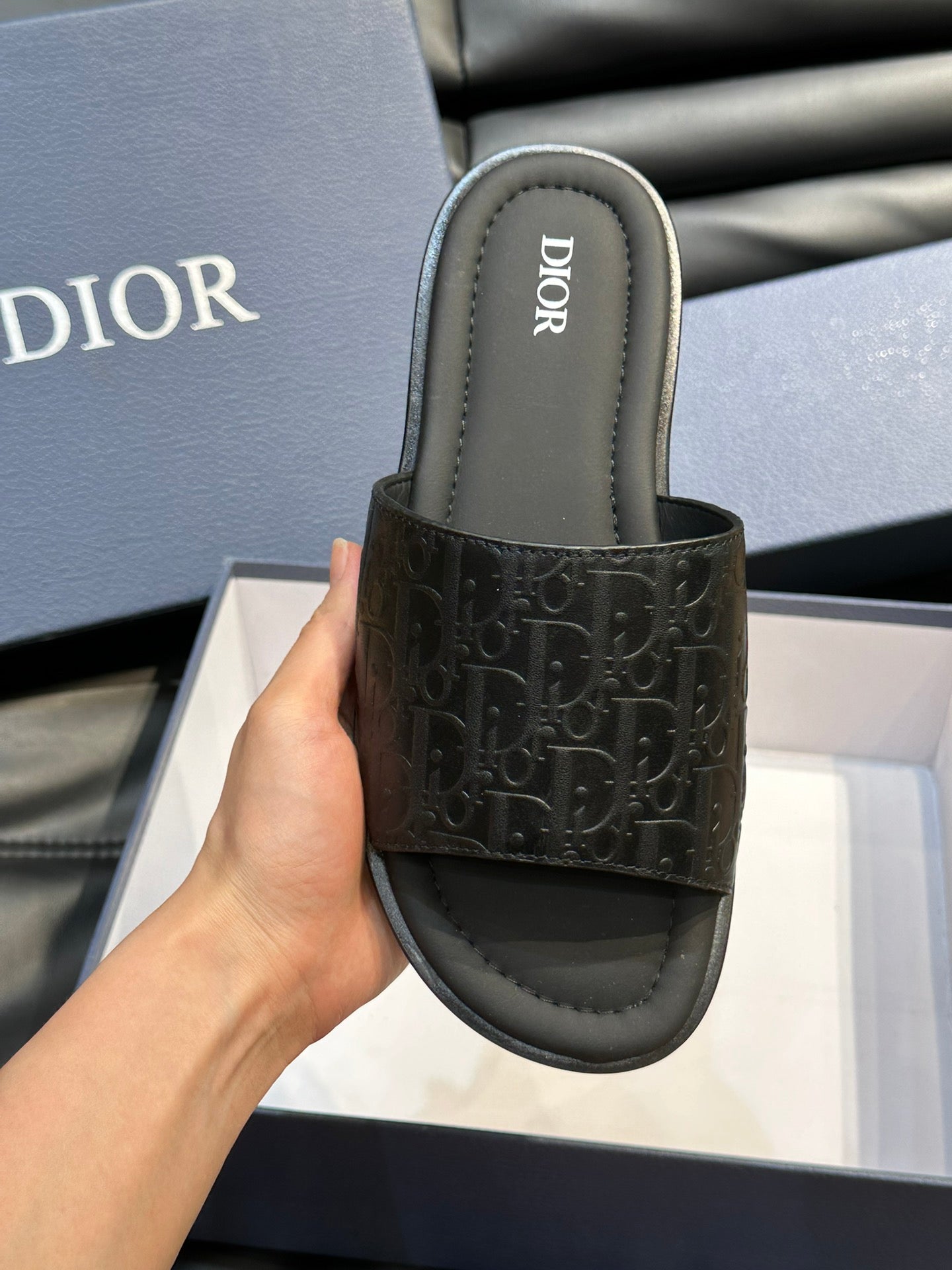 CD SLIDE ALIDAS SLIPPER BLACK CALFSKIN AND SILK