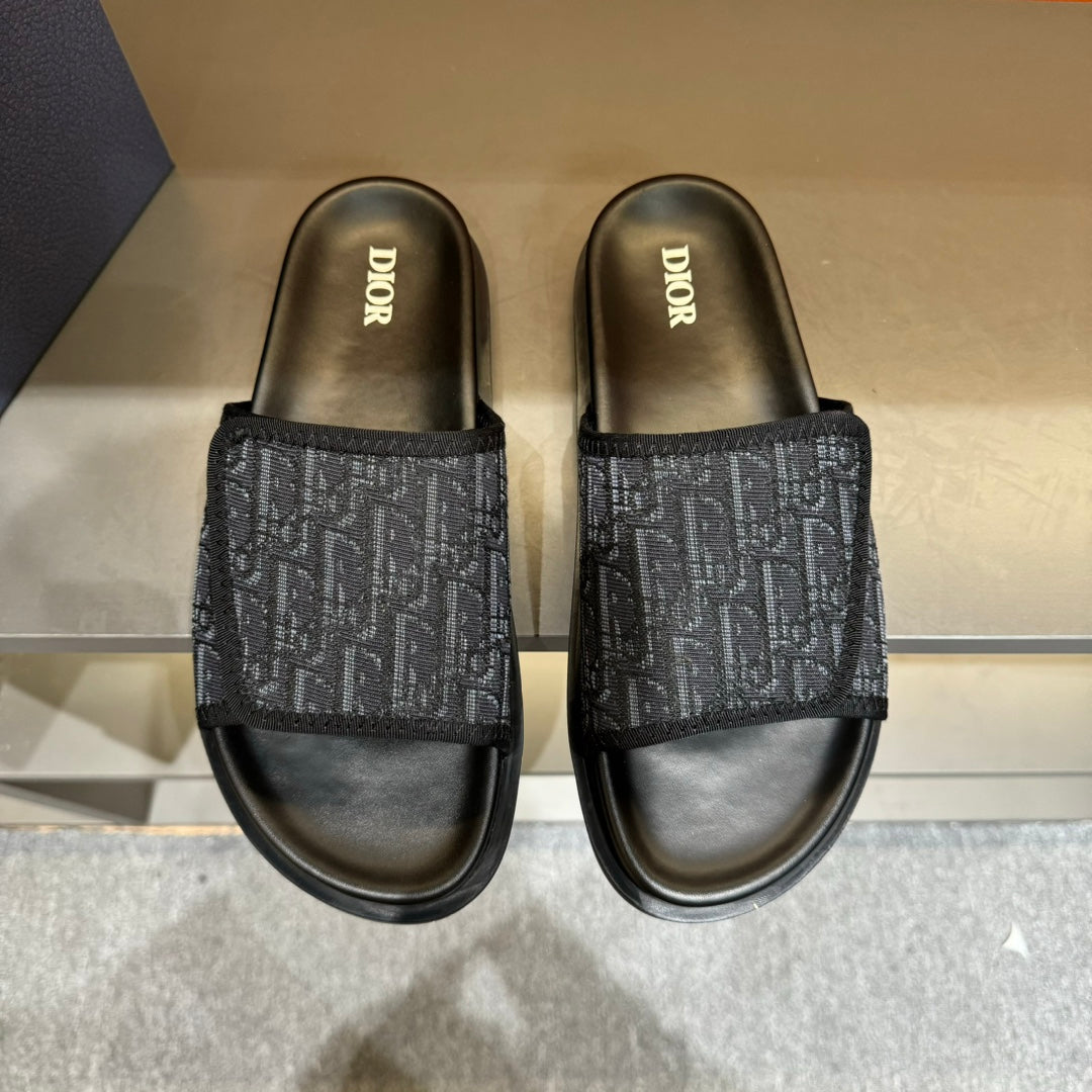 CD VELCRO STRAP SLIPPER BLACK JACQUARD