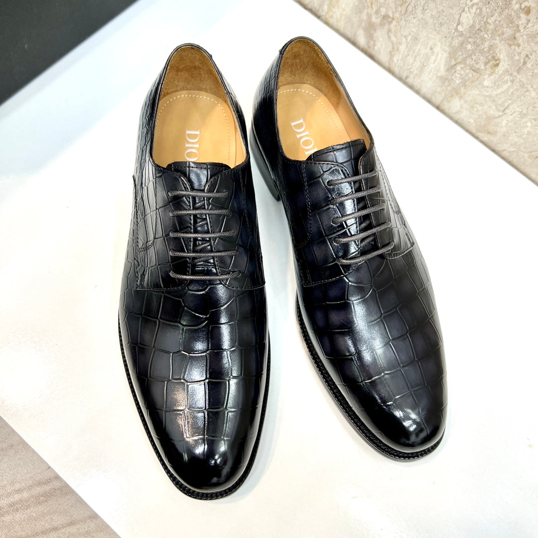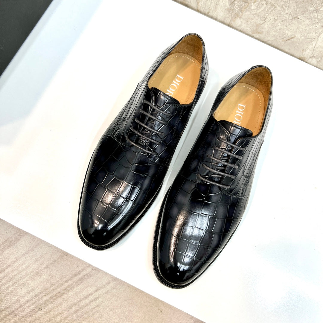 CD CROCODILE MOTIF BASIC OXFORD BLACK CALFSKIN