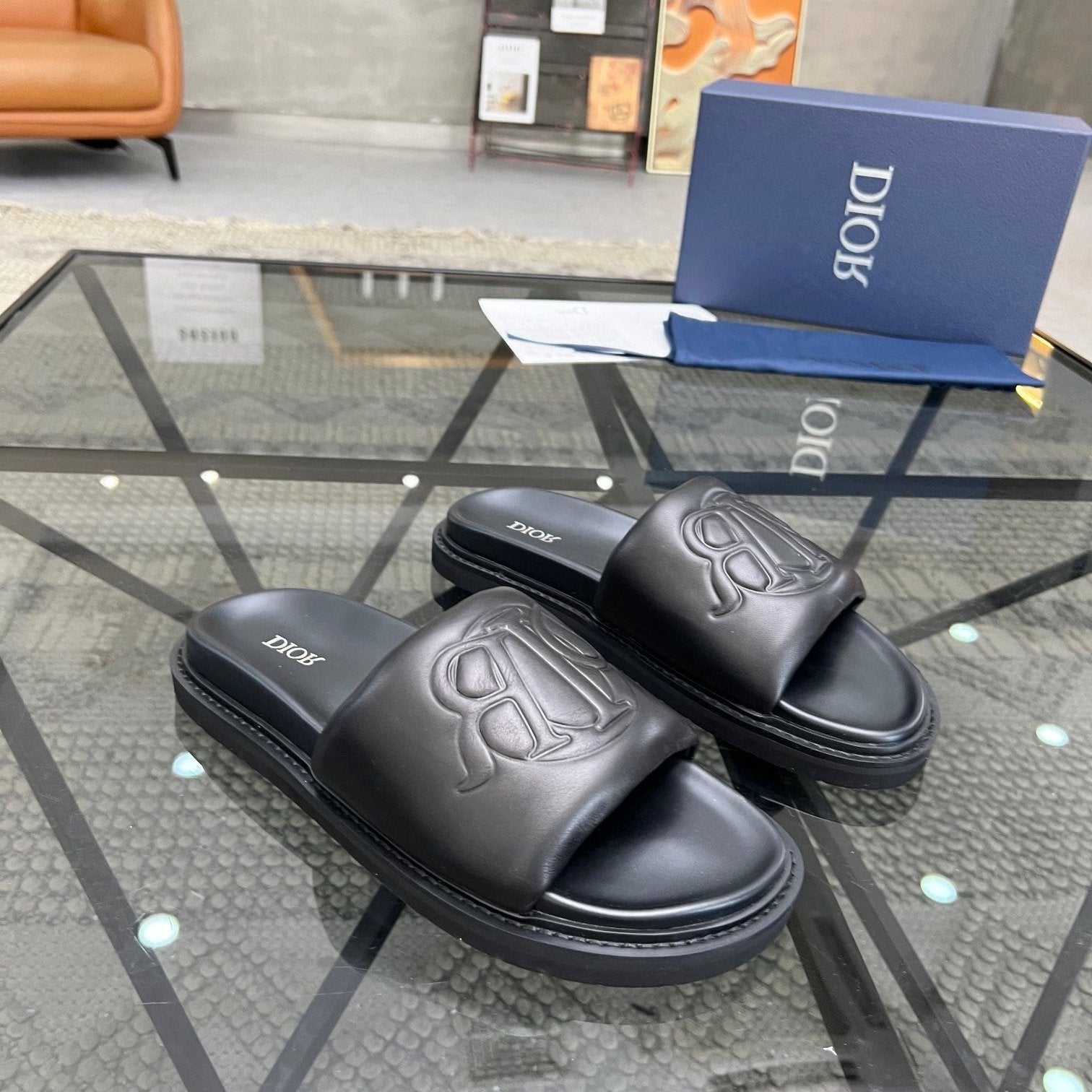 CD ALIDAS FLIP-FLOPS BLACK MONOGRAM CALFSKIN
