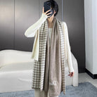 SCARF 190 CM IN KHAKI BEIGE MIX WHITE CARO CASHMERE 388125