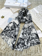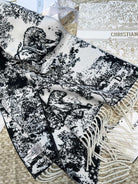 SCARF 220 CM IN BLACK MIX WHITE MONOGRAM CASHMERE AND WOOL 413658