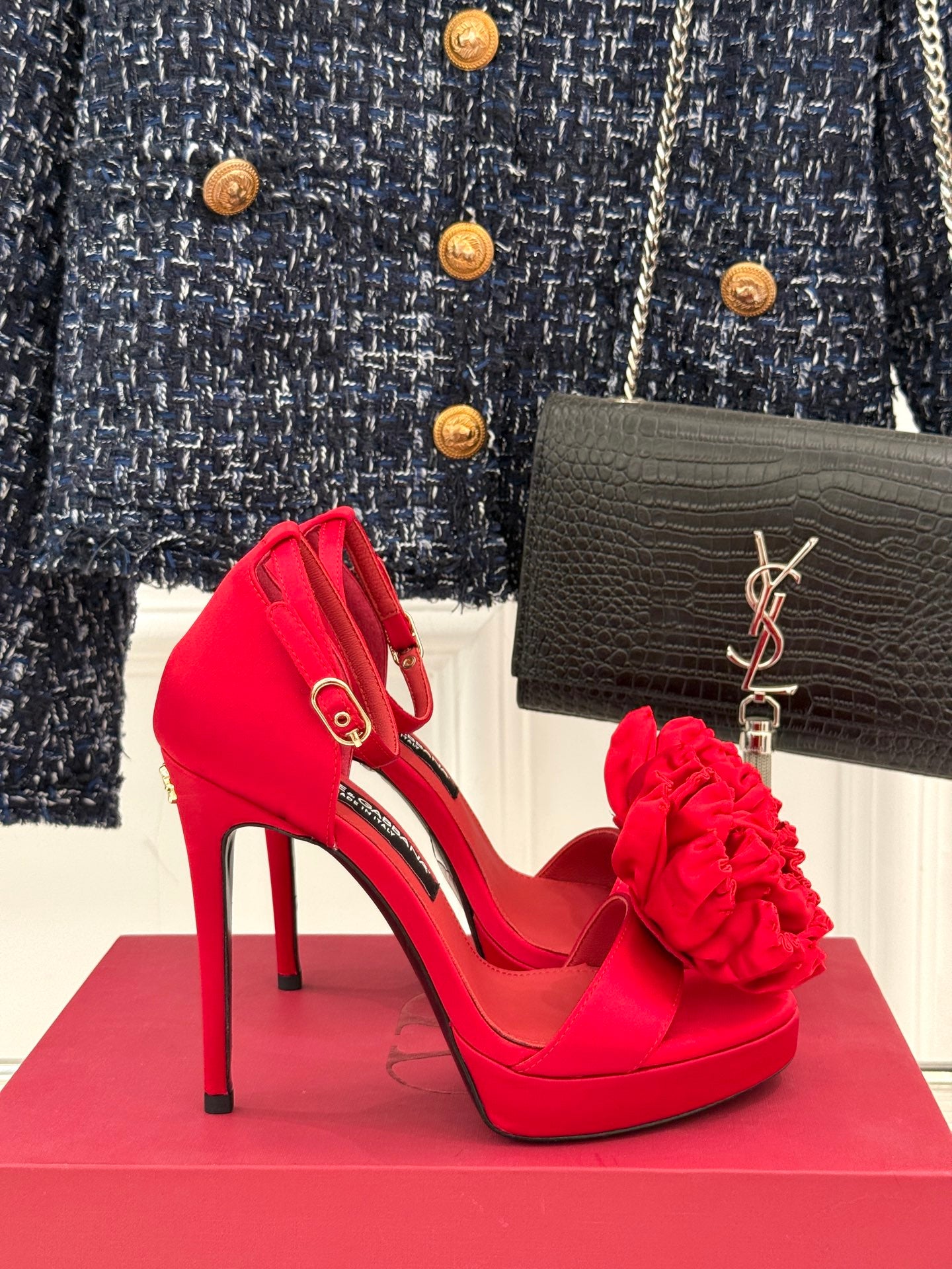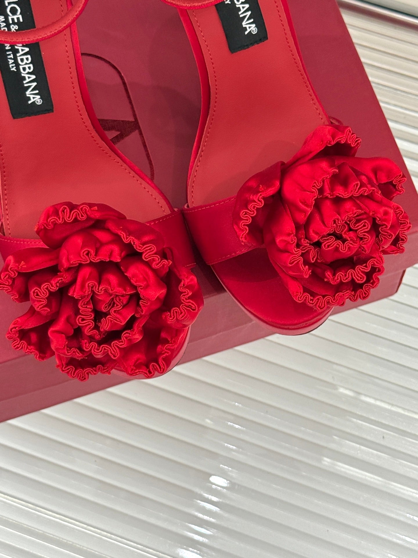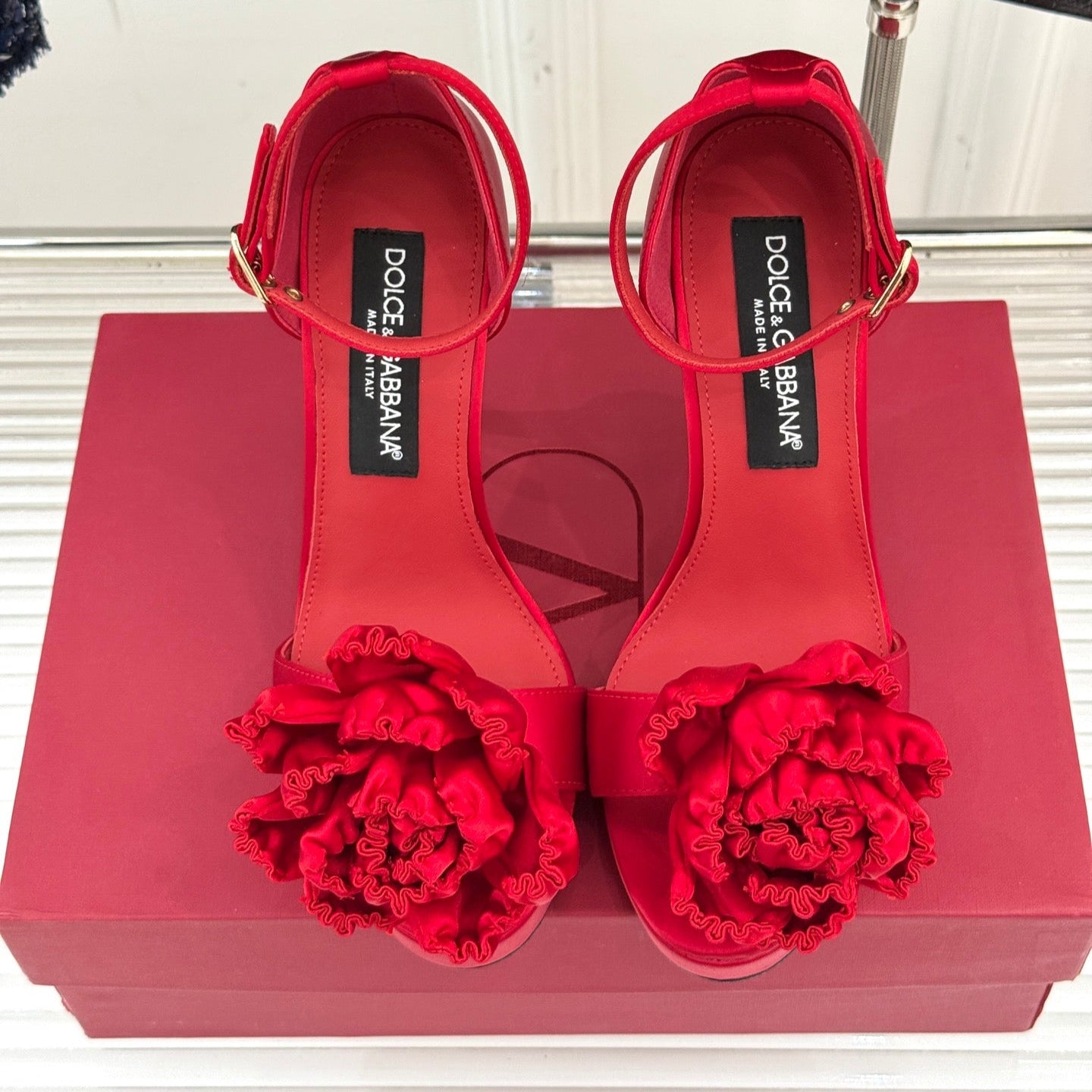 DC 24 Keira Floral-Appliqué Sandals Red Sheepskins & Cowhide 304709