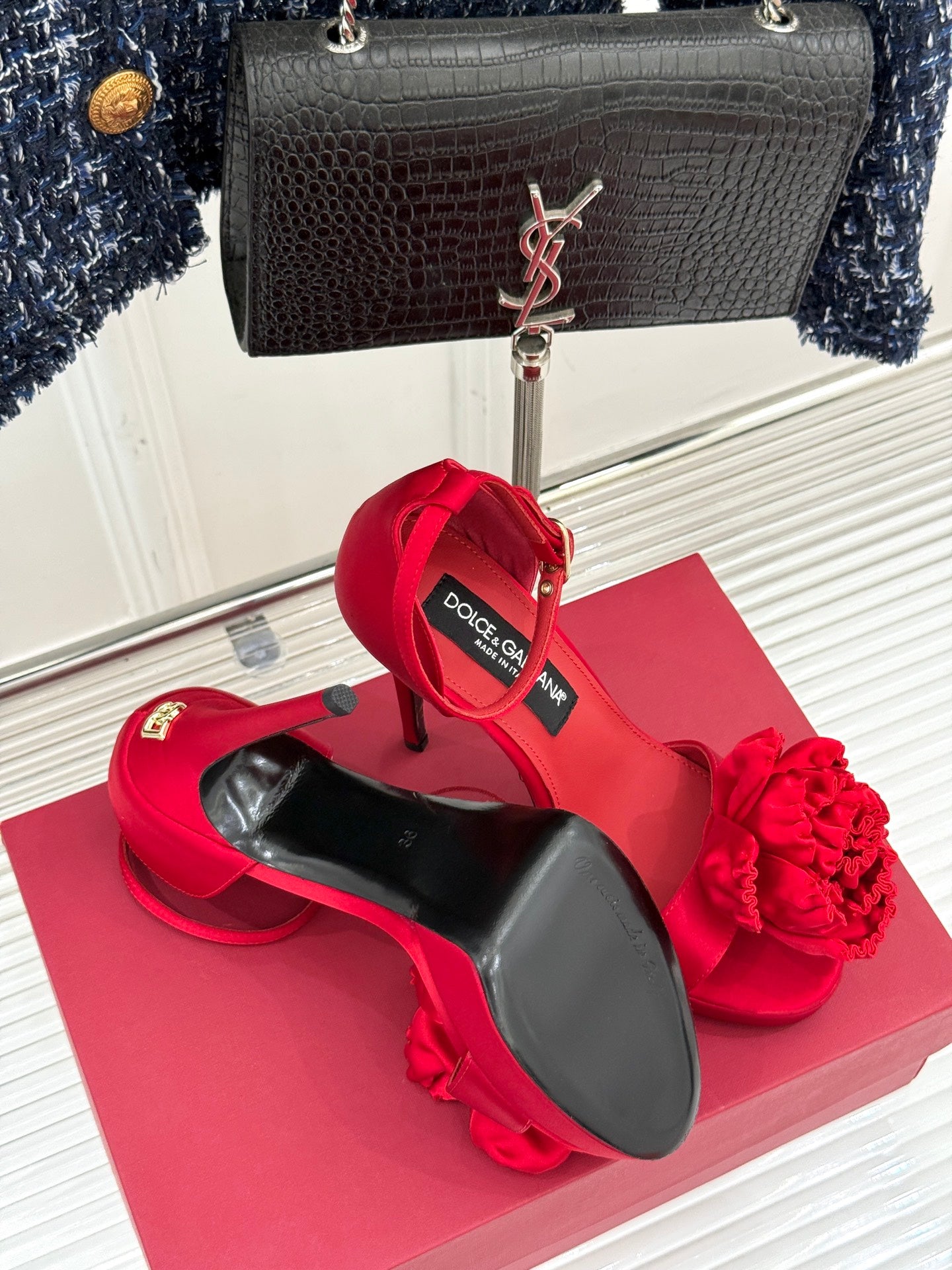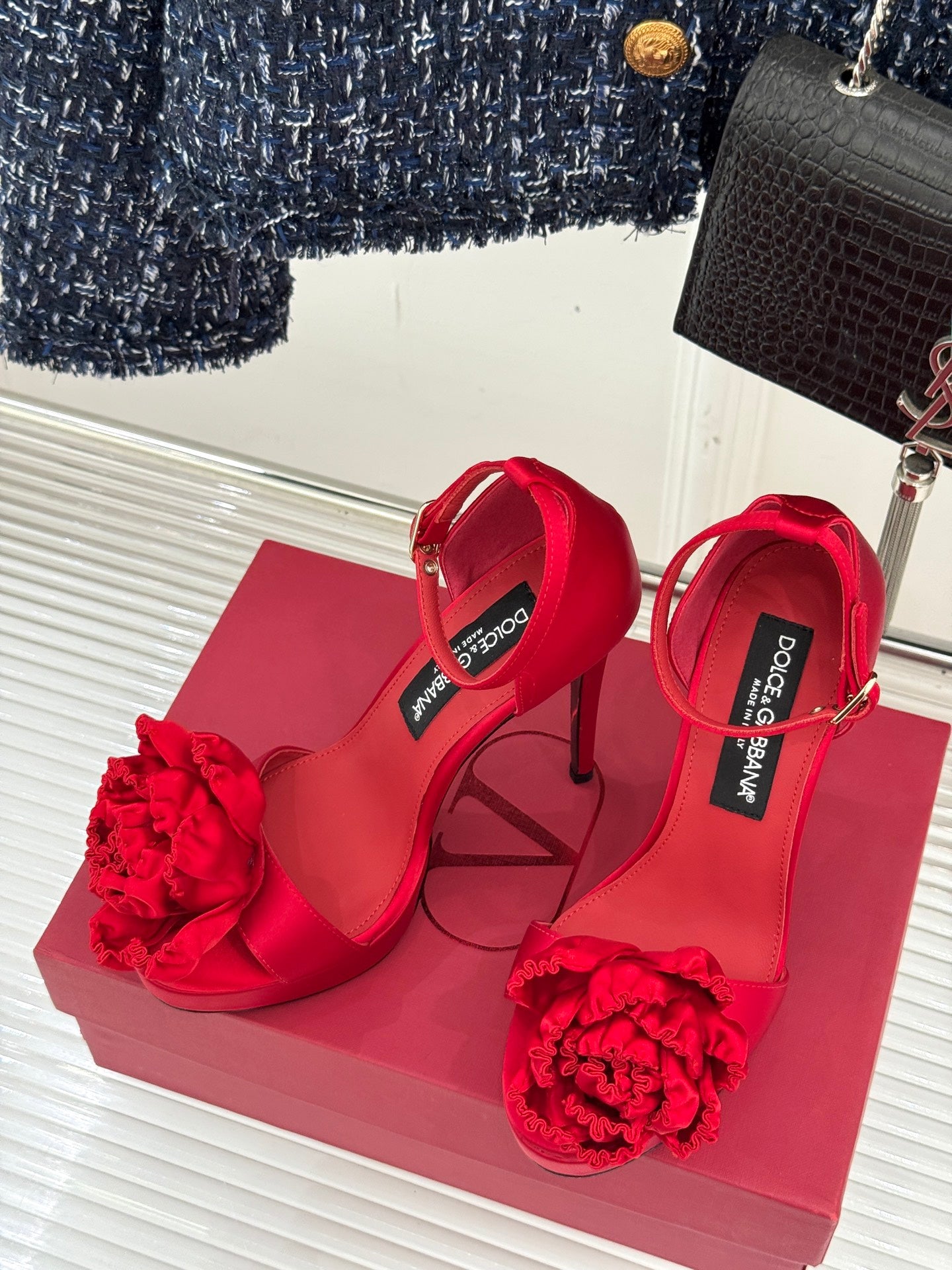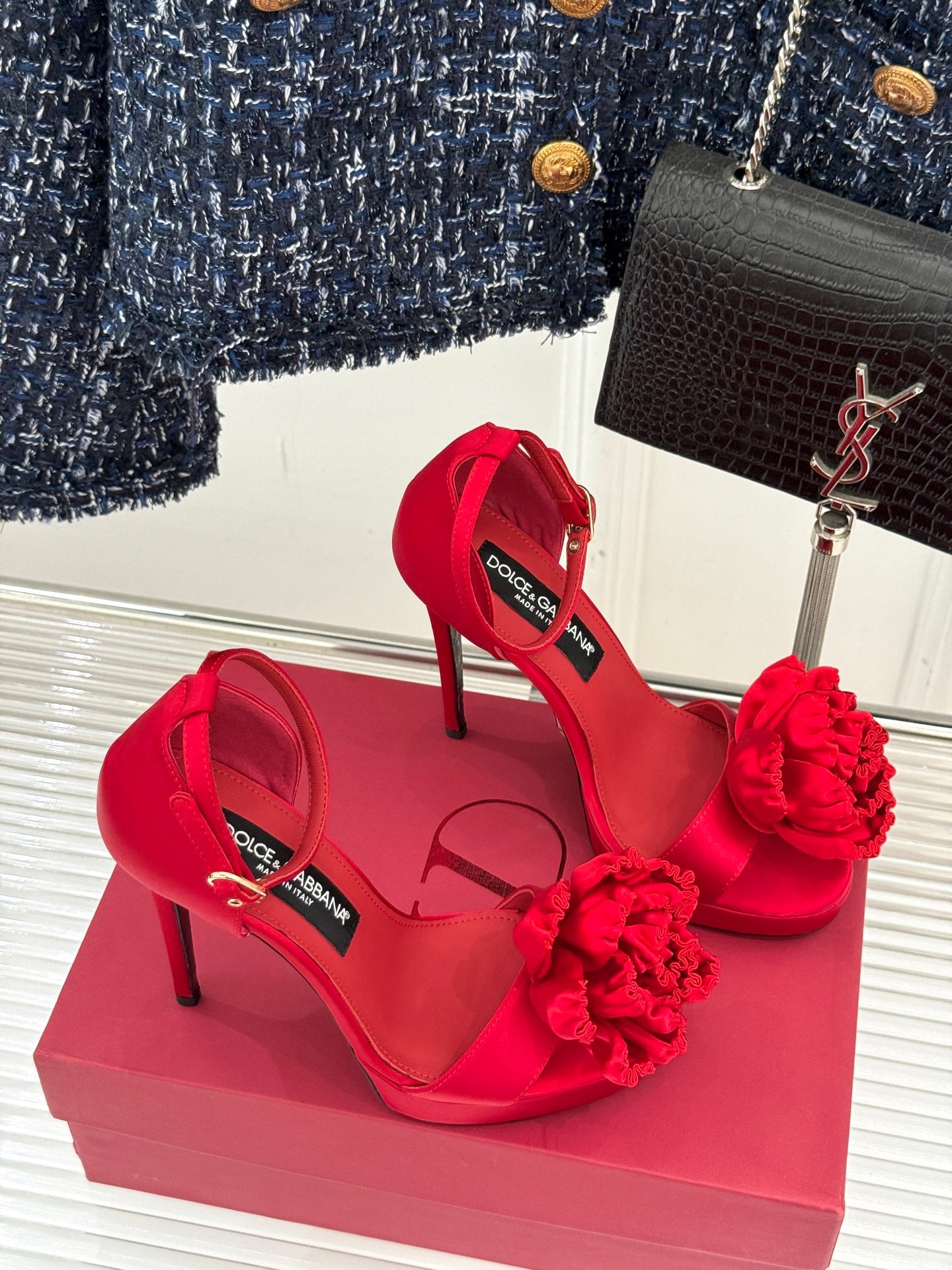 DC 24 Keira Floral-Appliqué Sandals Red Sheepskins & Cowhide 304709