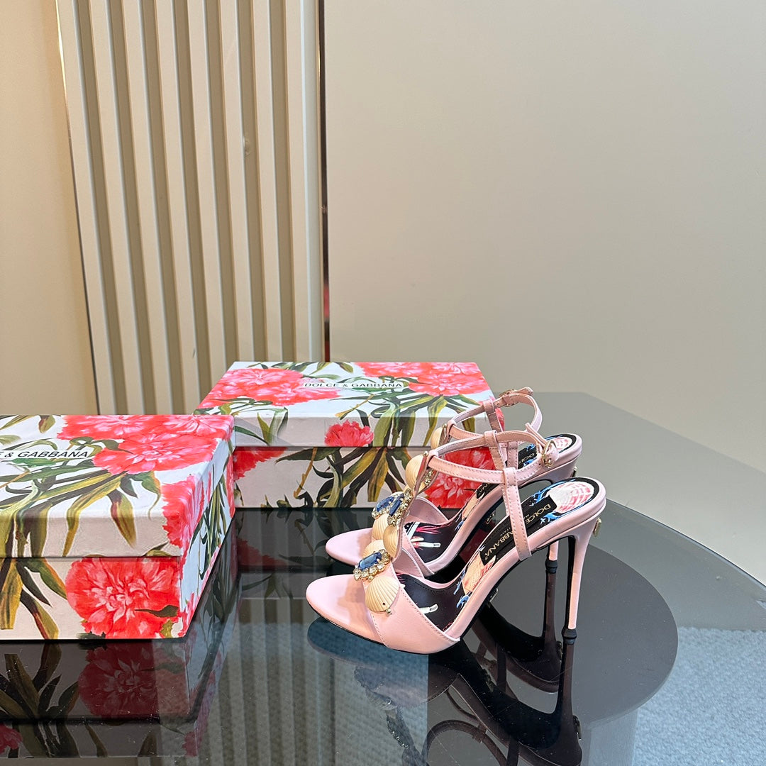 DC 24 Shell Rhinestone High Heel Sandals Pink Cowhide & Sheepskin 946157