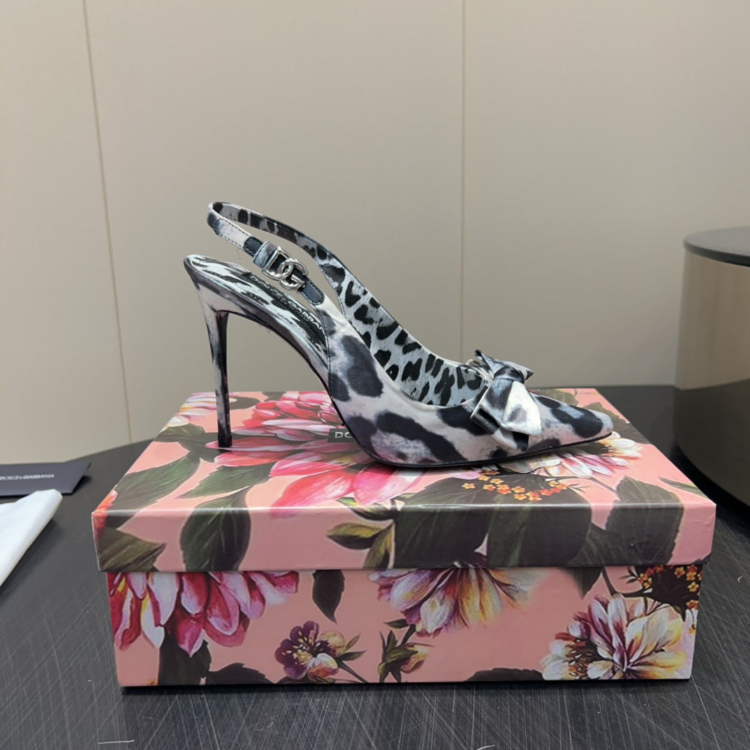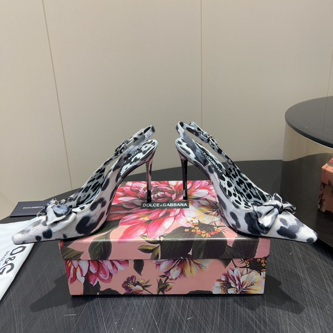 DC 25 Bow Slingback Pumps 100mm Leopard-Print Satin And Sheepskin 381615