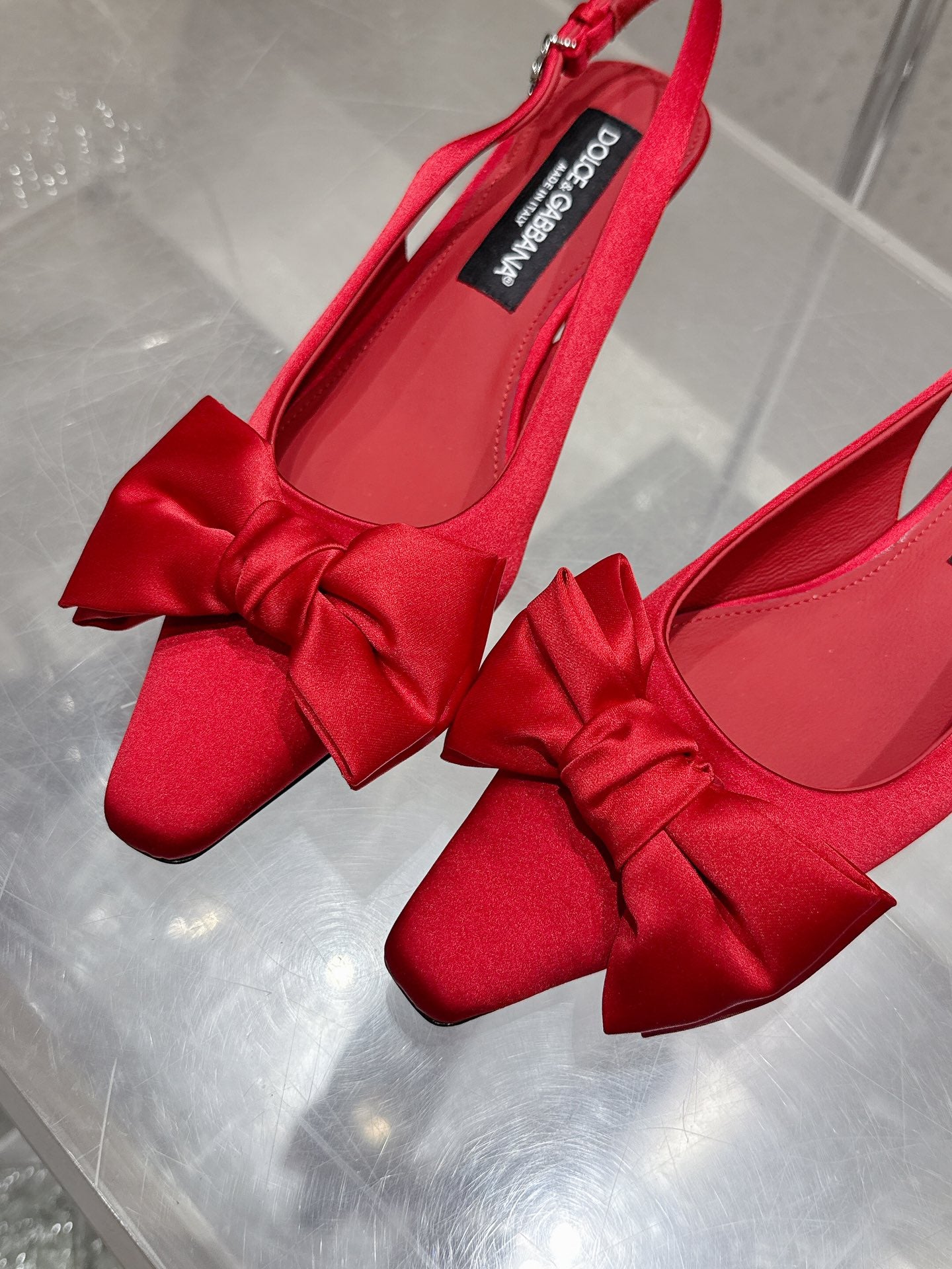 DC 25 Bow Slingback Pumps 30mm Red Satin & Sheepskin 359510
