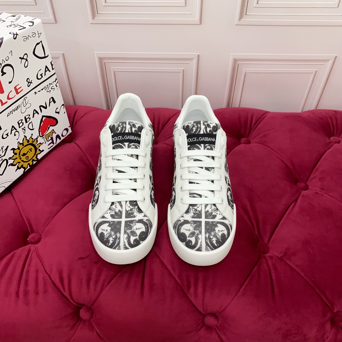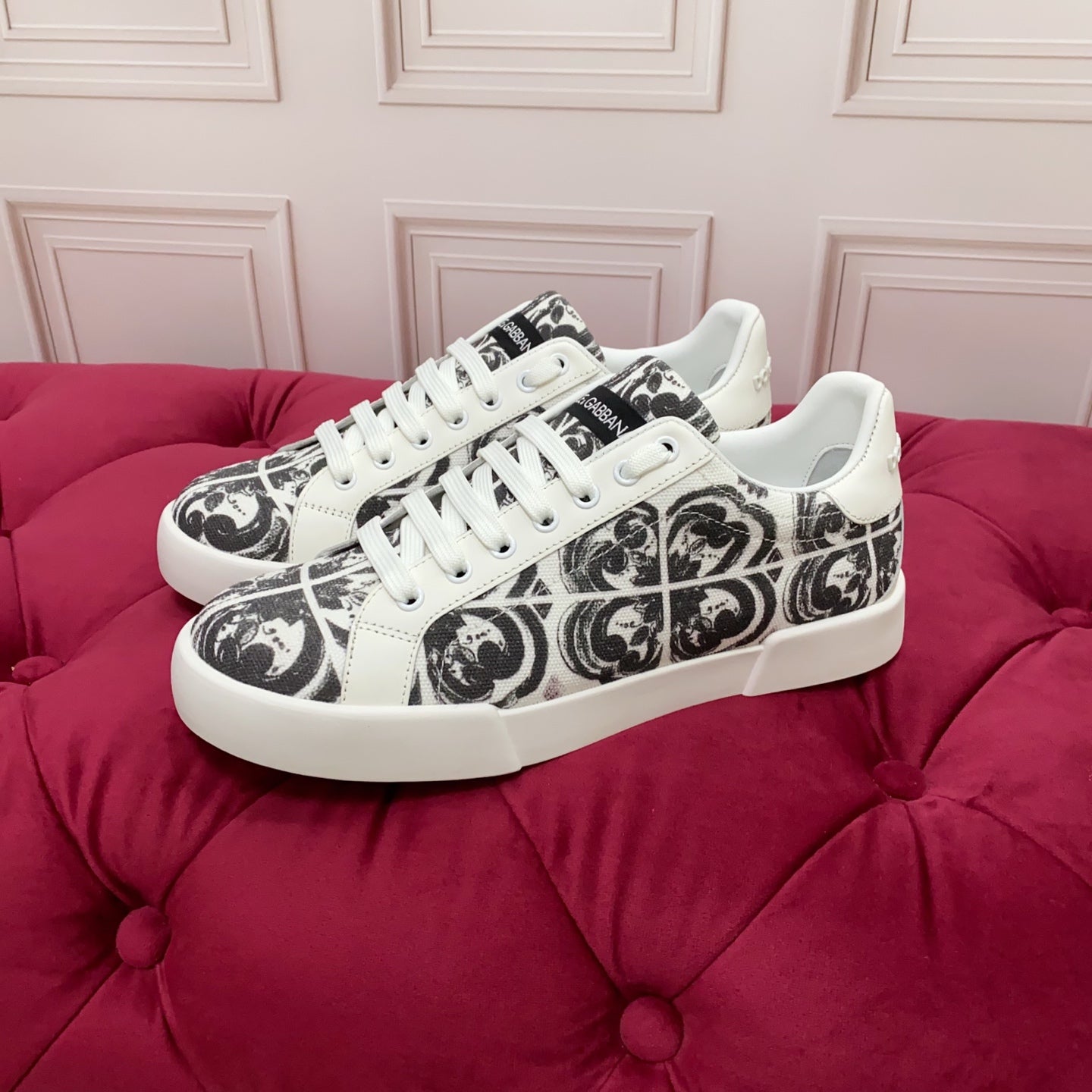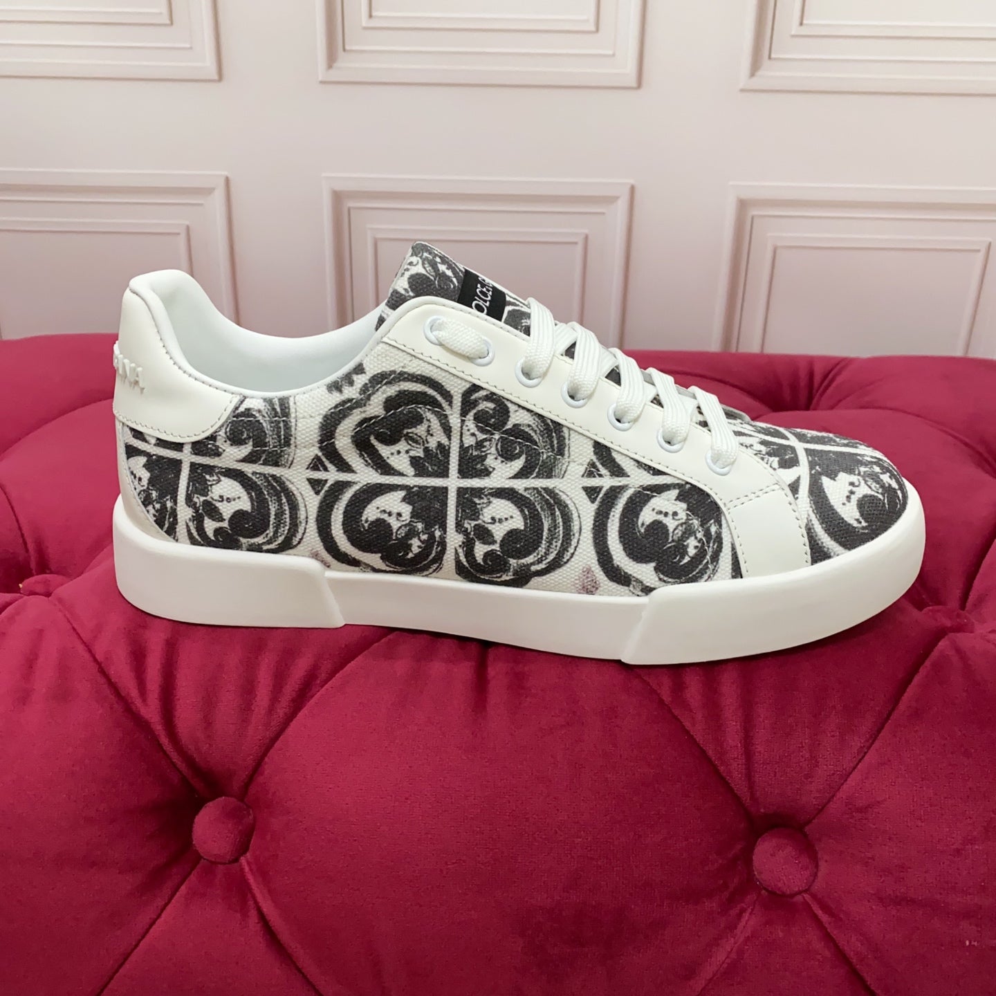 DC 25 Portofino Light Sneakers Black White Majolica-print & Sheepskin 333869