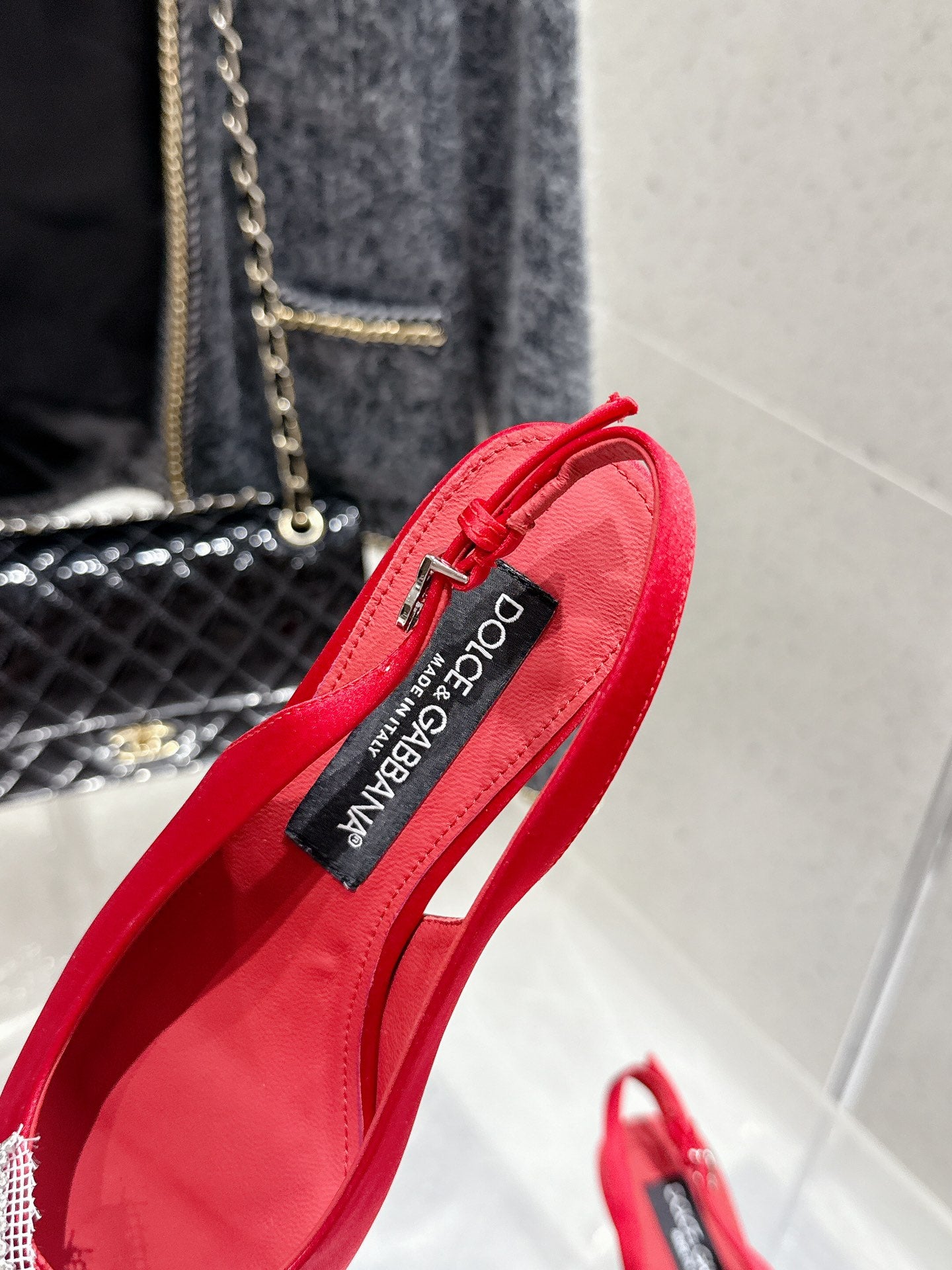 DC 25 Rhinestone Bow Slingback Pumps 40mm Red Silk & Sheepskin Sheepskin 359512