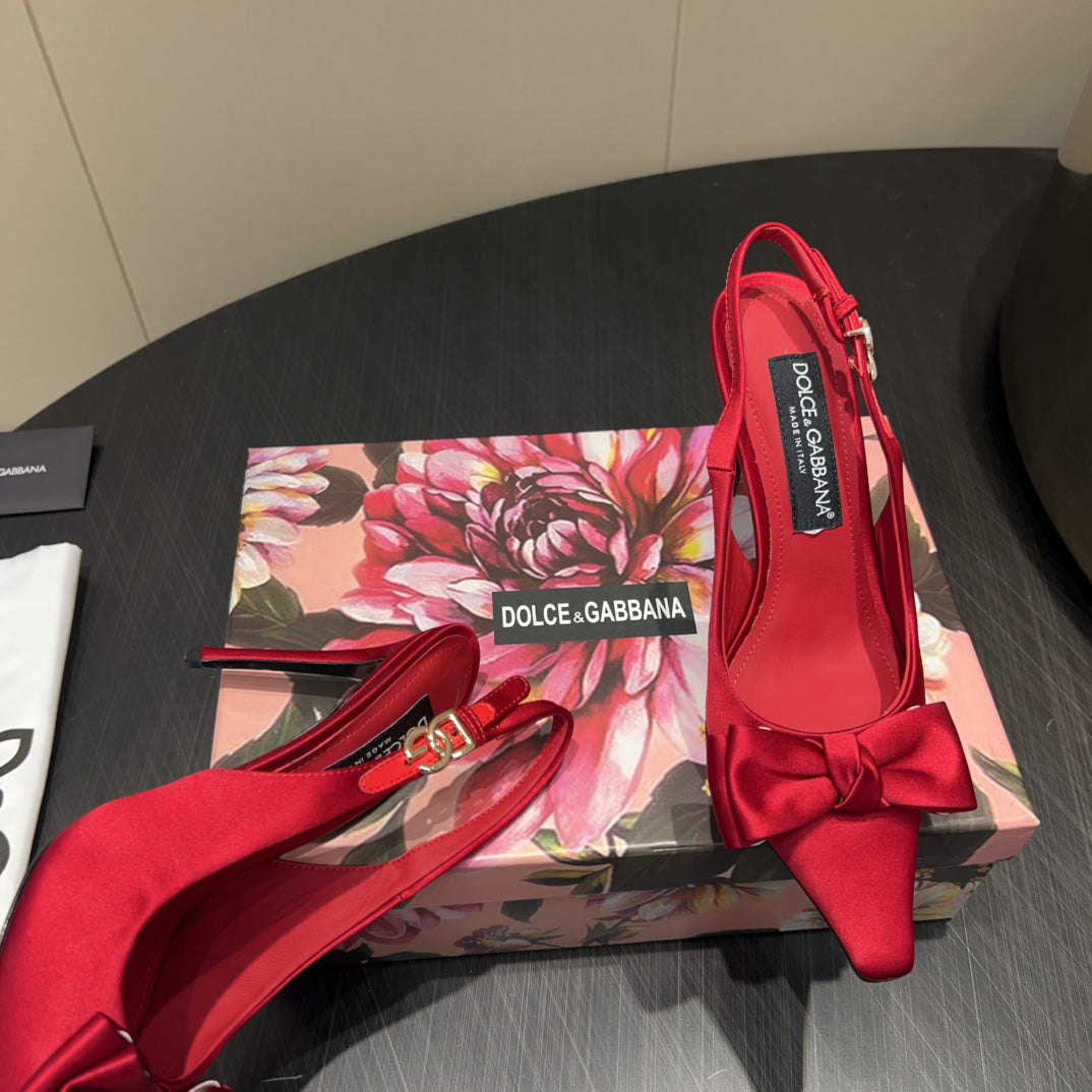 DC 25 Toe Bow High Heel Shoes 100mm Red Silk And Sheepskin 381613