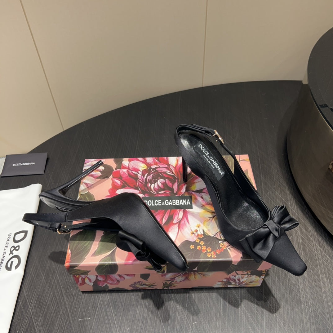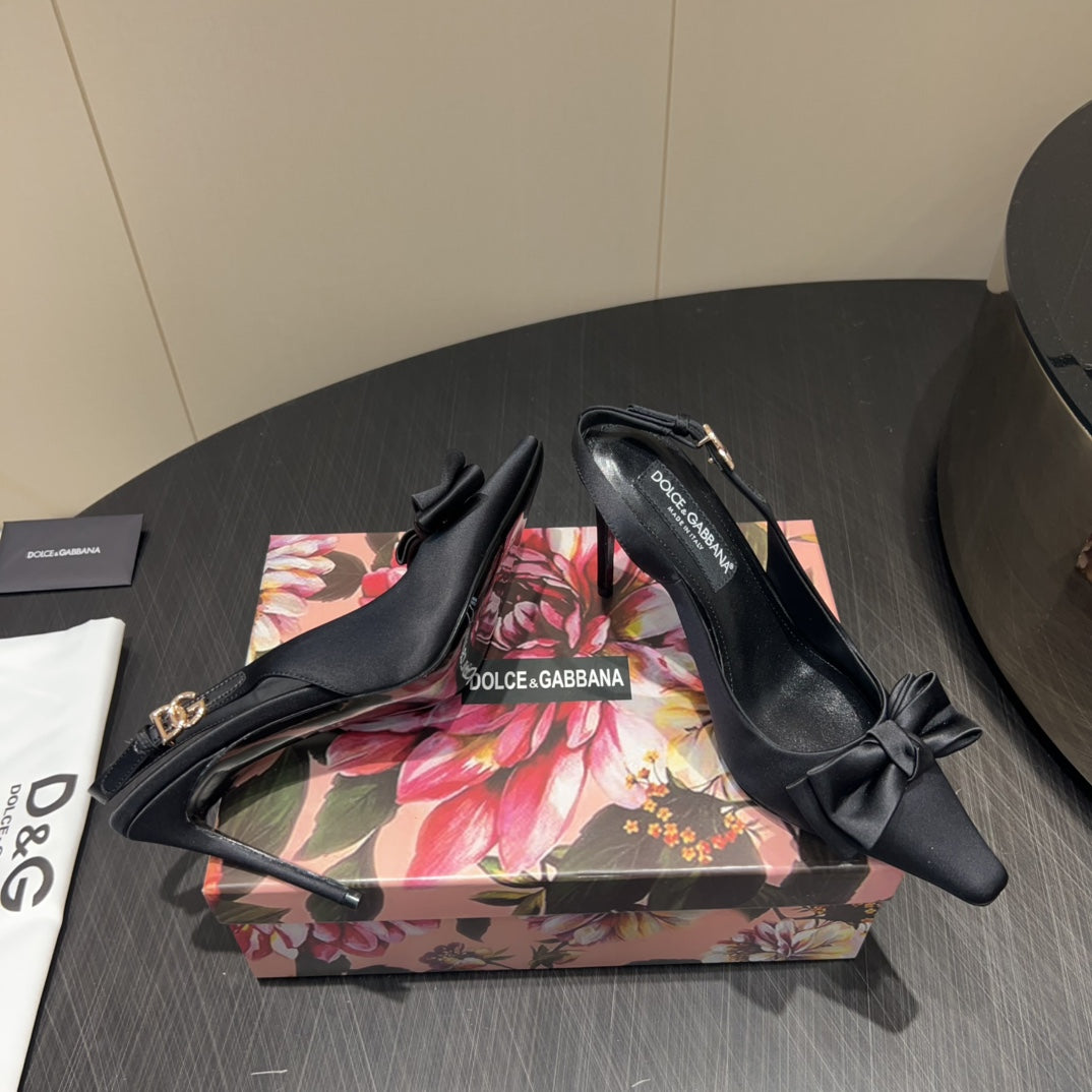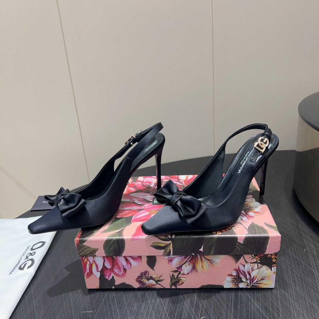 DC 25 Toe Bow Slingback Pumps 100mm Black Silk And Sheepskin 381612