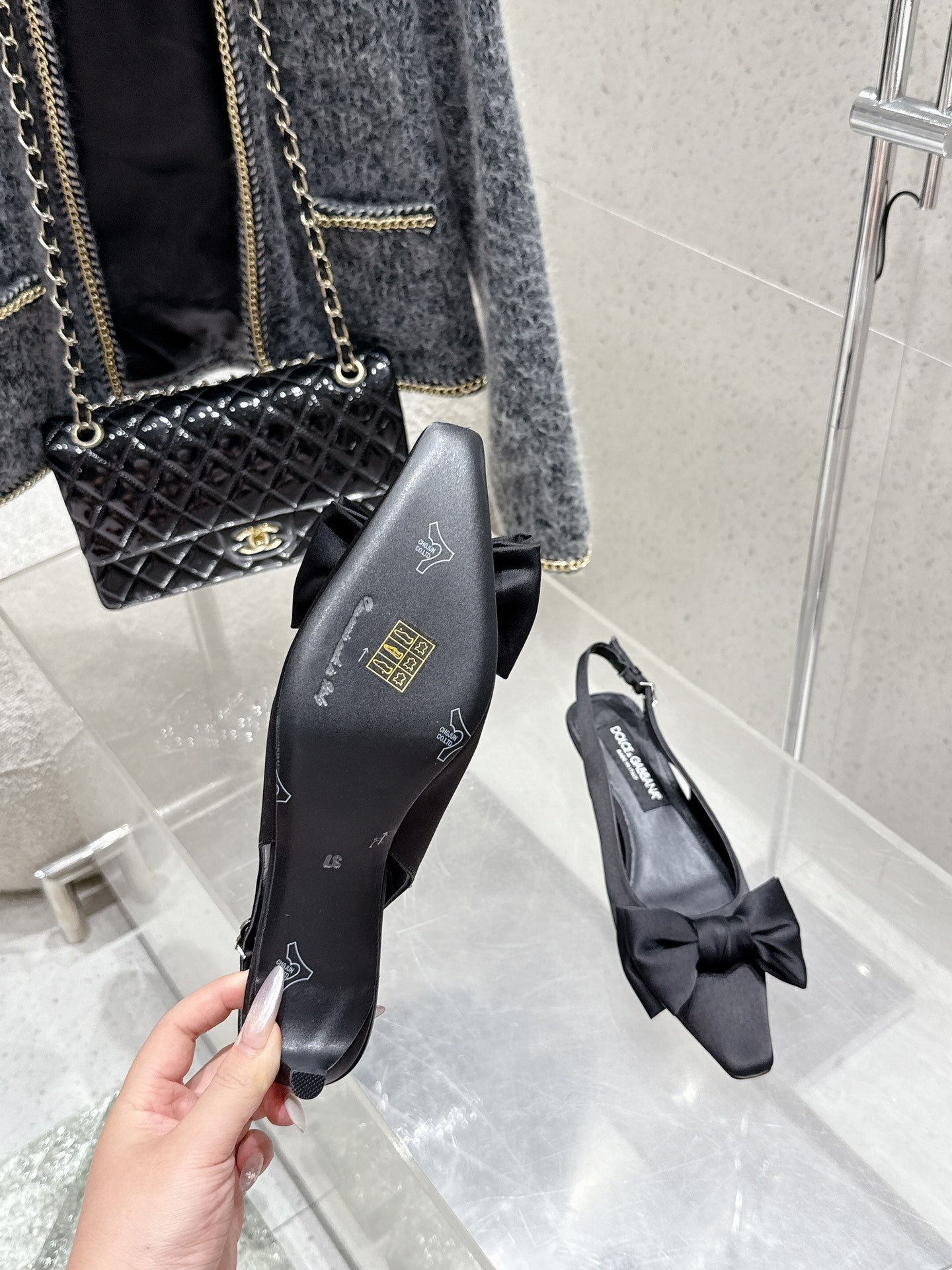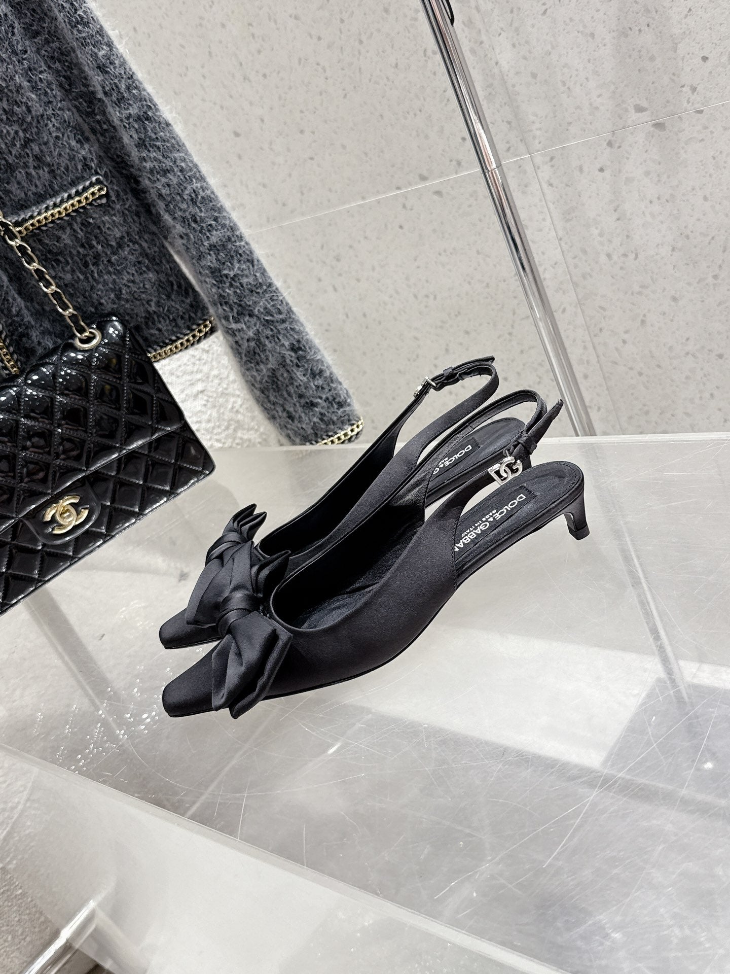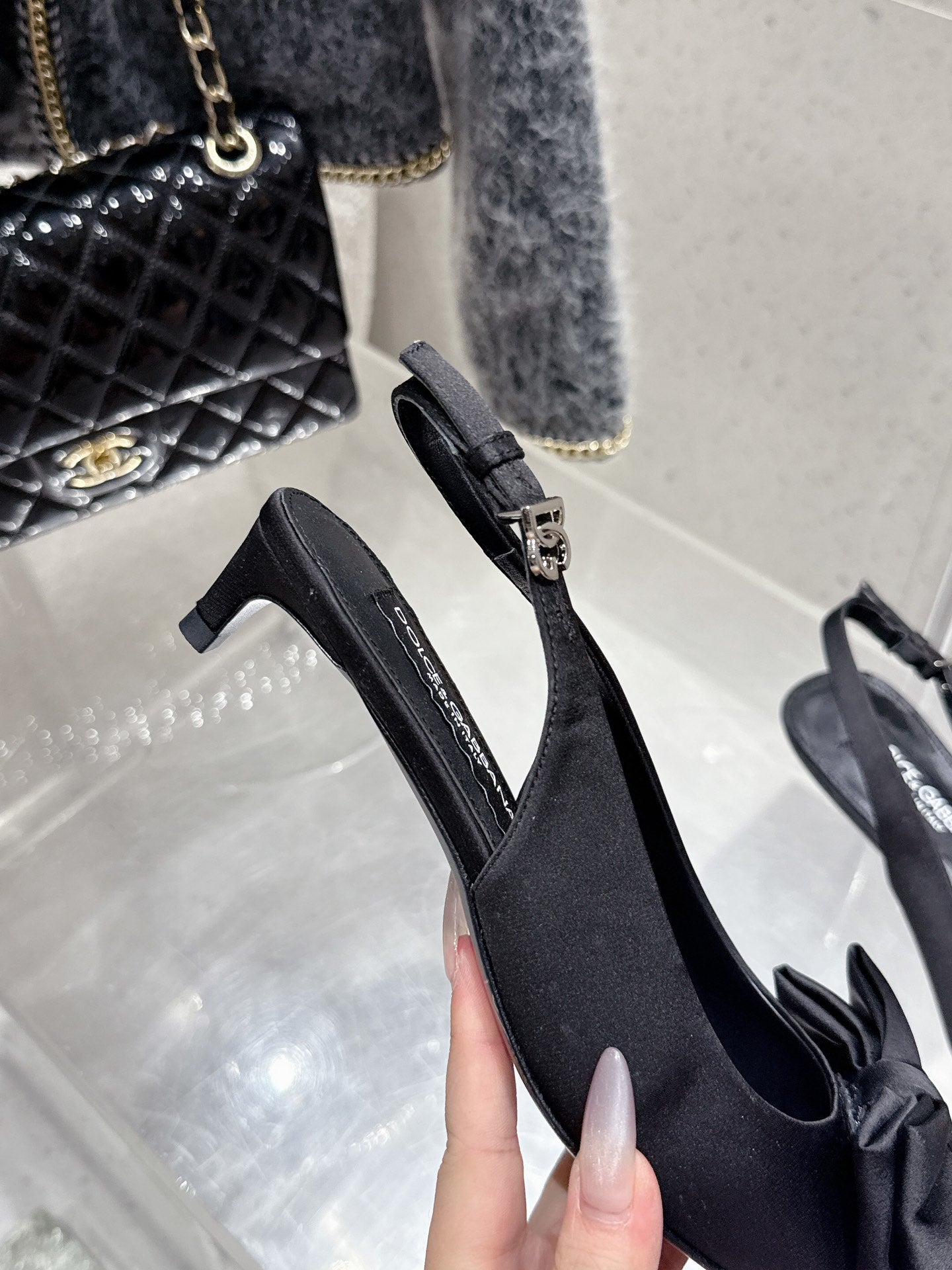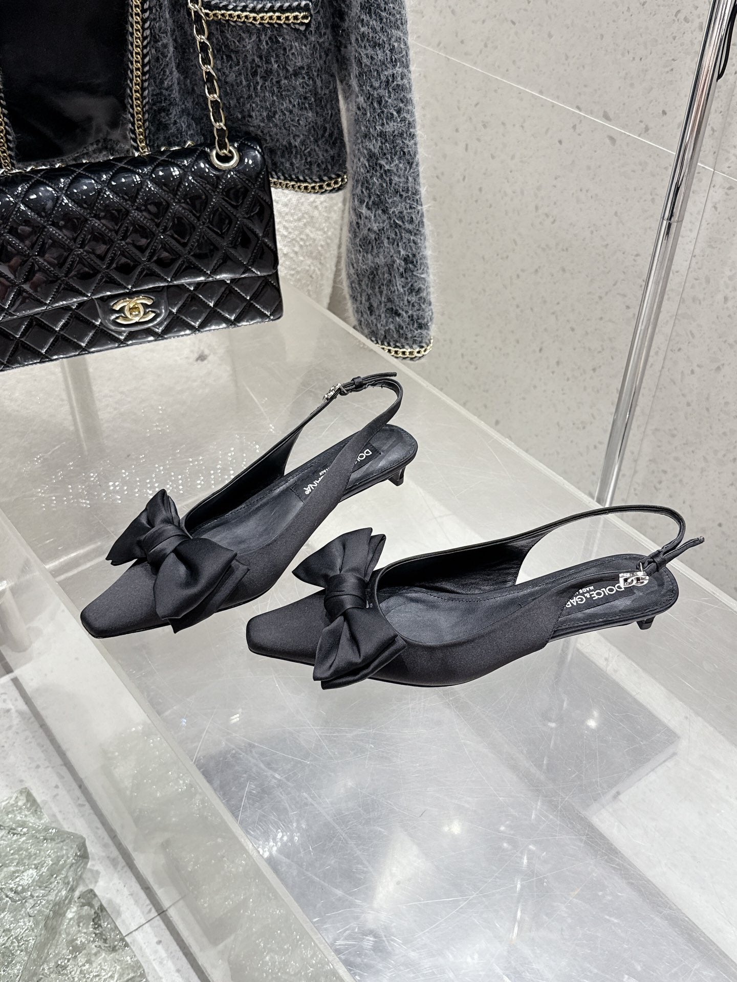 DC Bow Slingback Pumps 30mm Black Satin & Sheepskin 359511