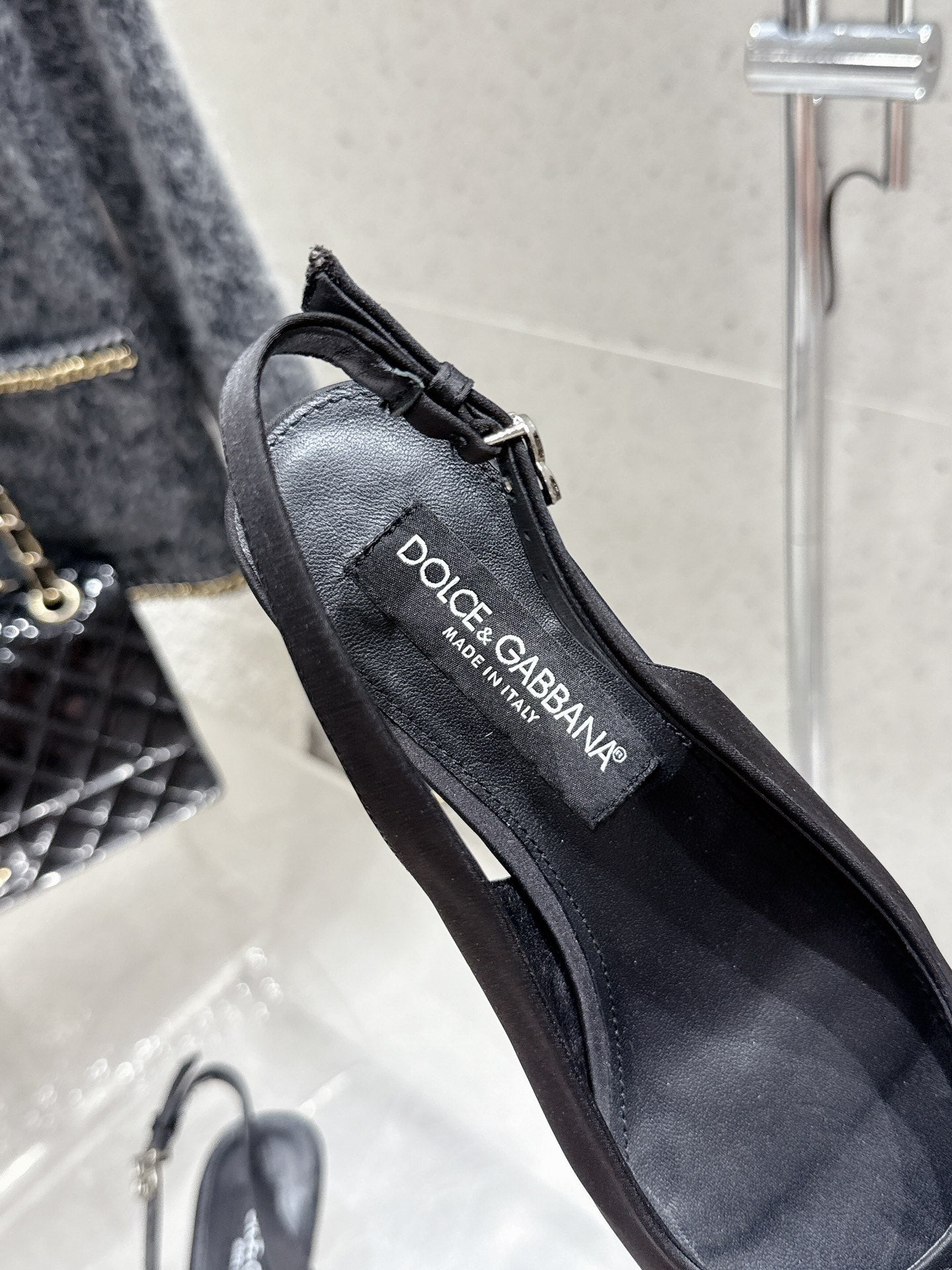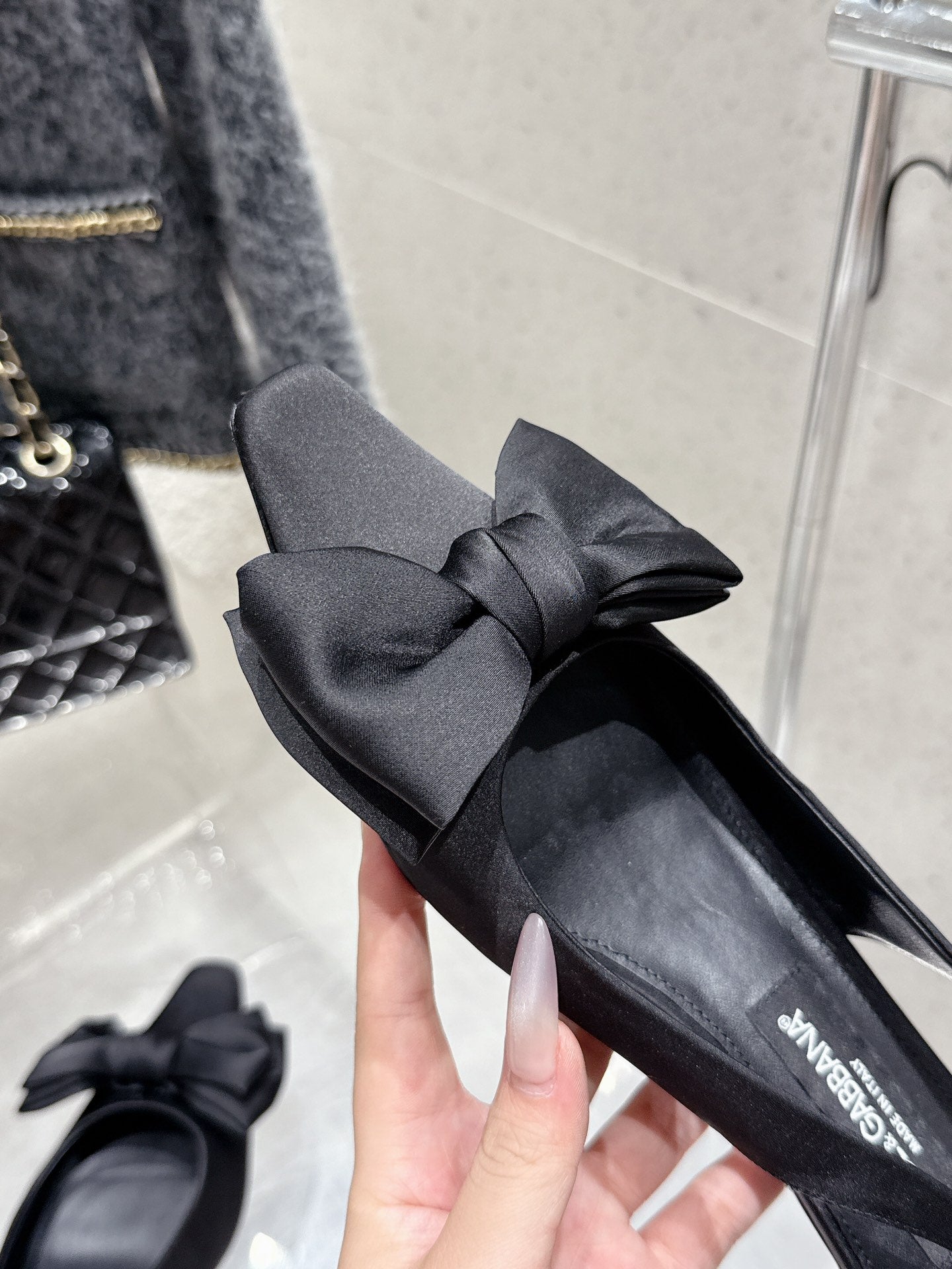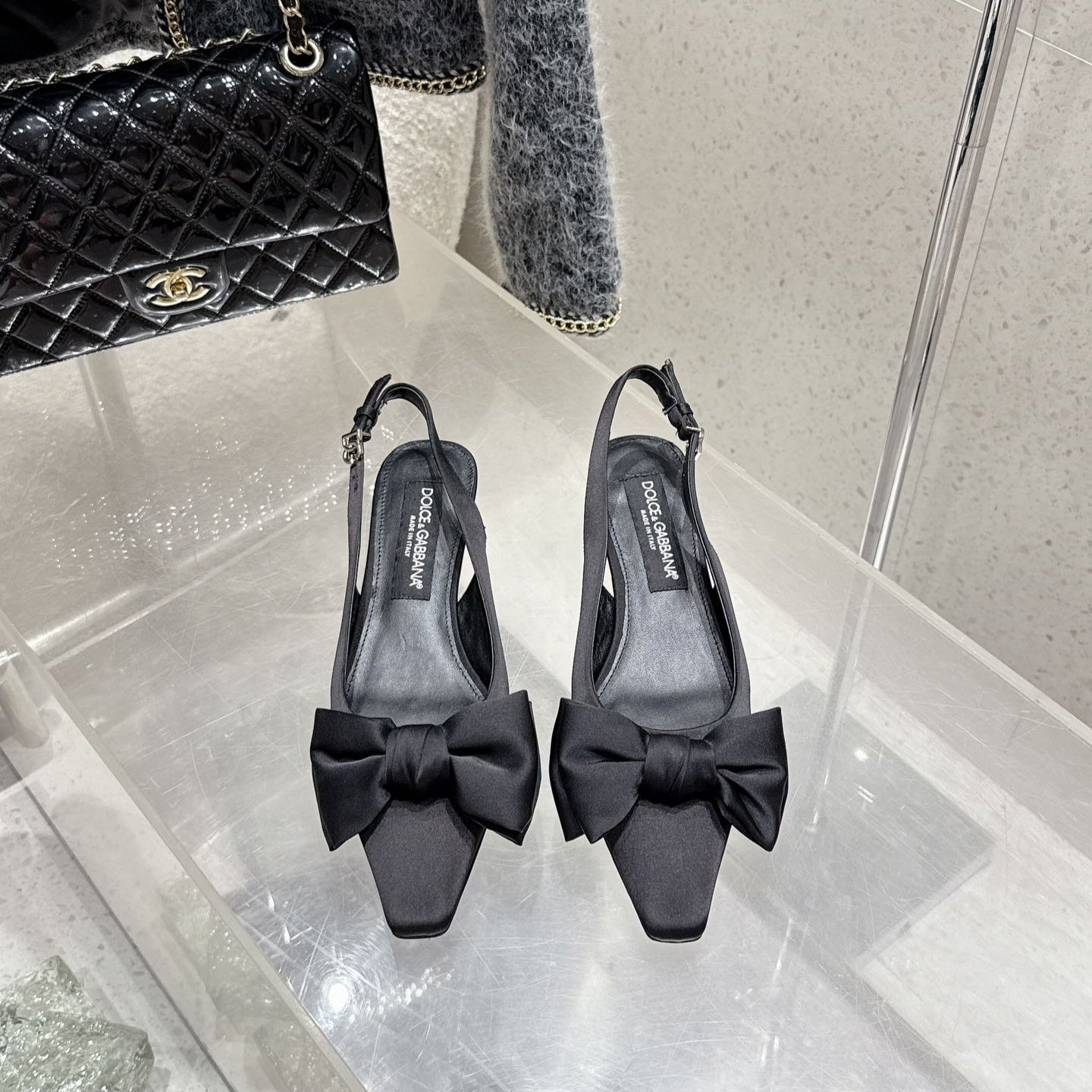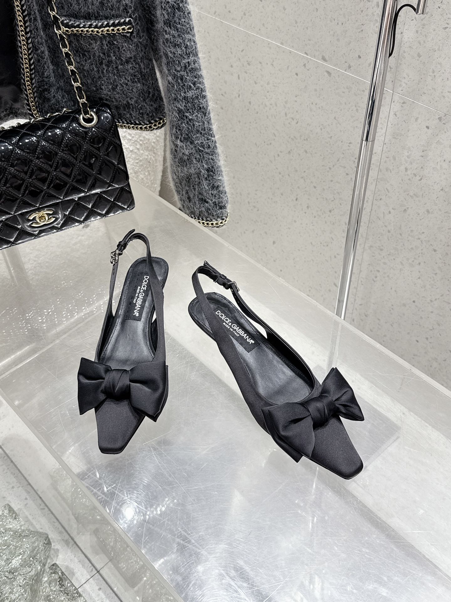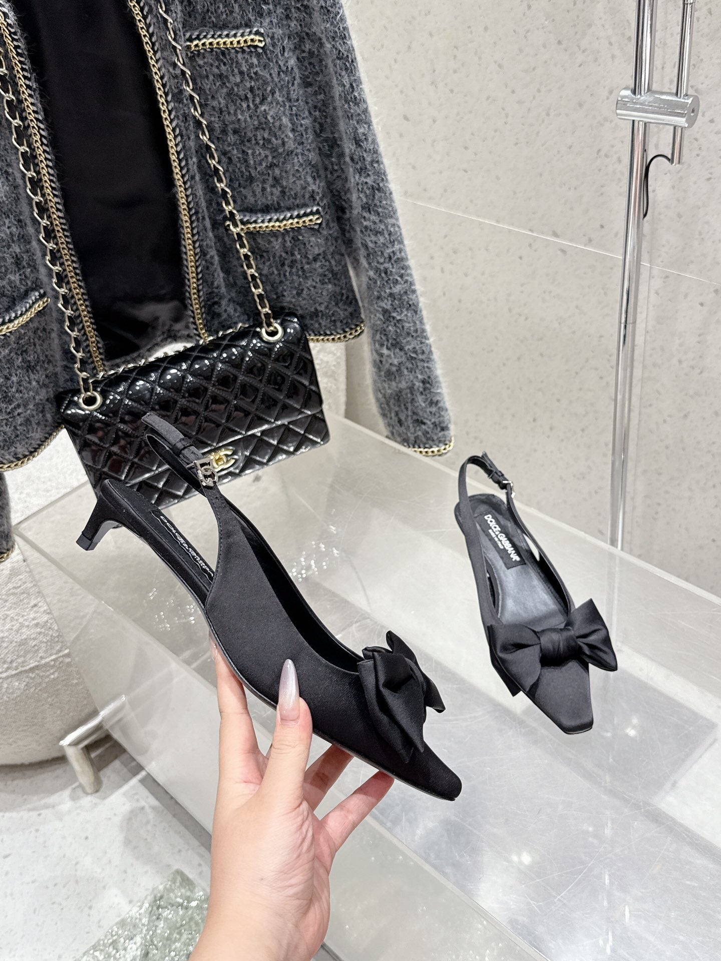 DC Bow Slingback Pumps 30mm Black Satin & Sheepskin 359511