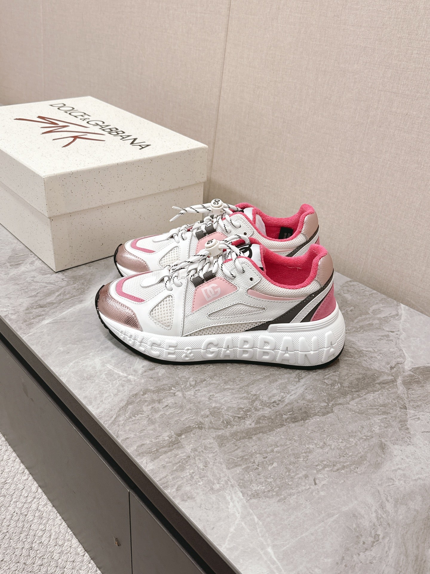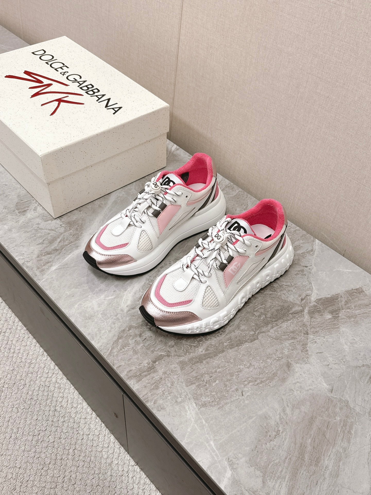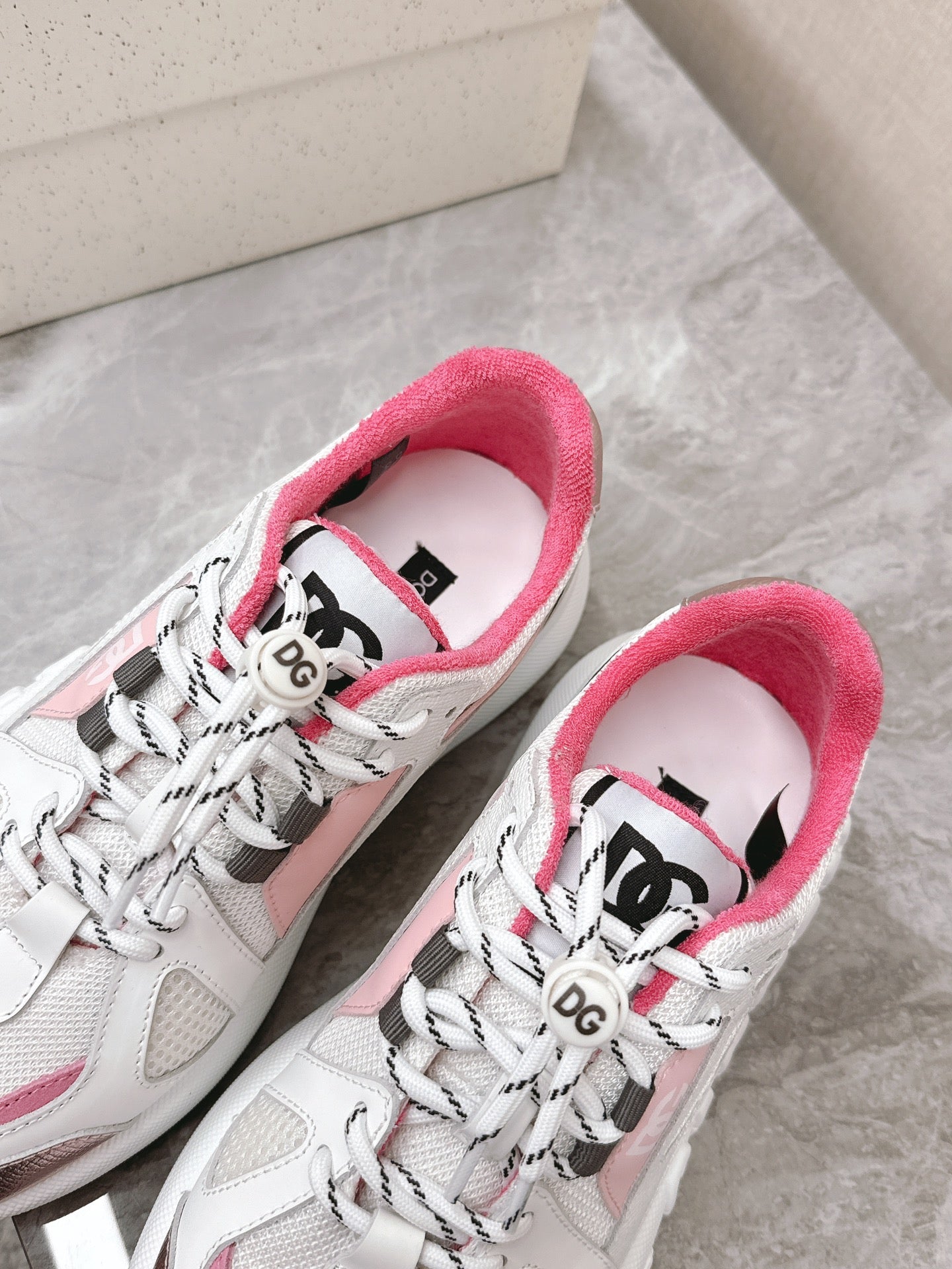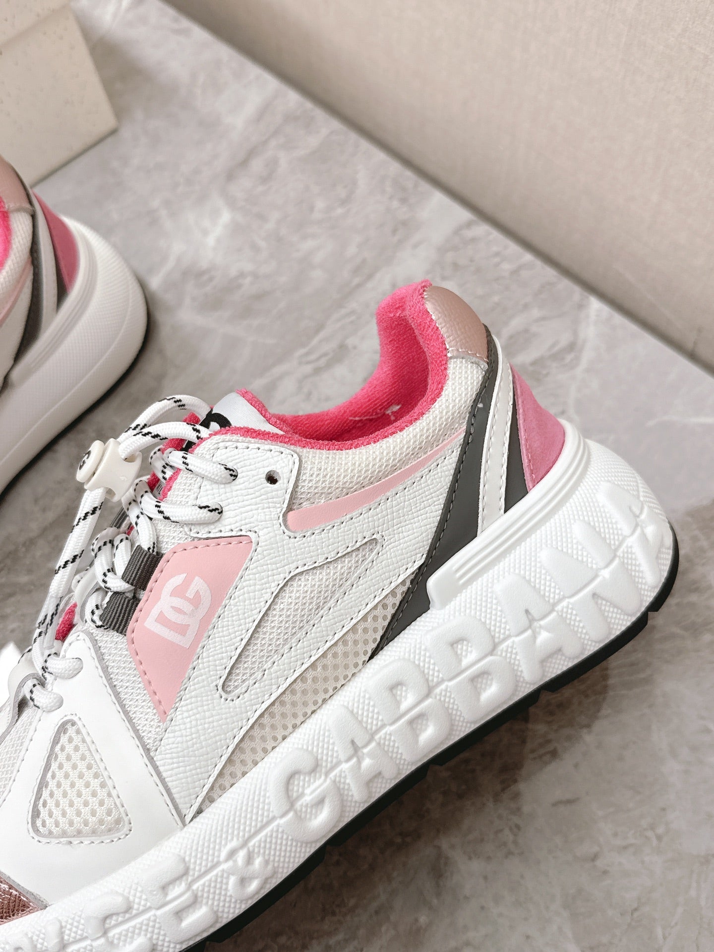 DC Chunky Sneakers White Pink Cowhide & Mesh Lining 339131