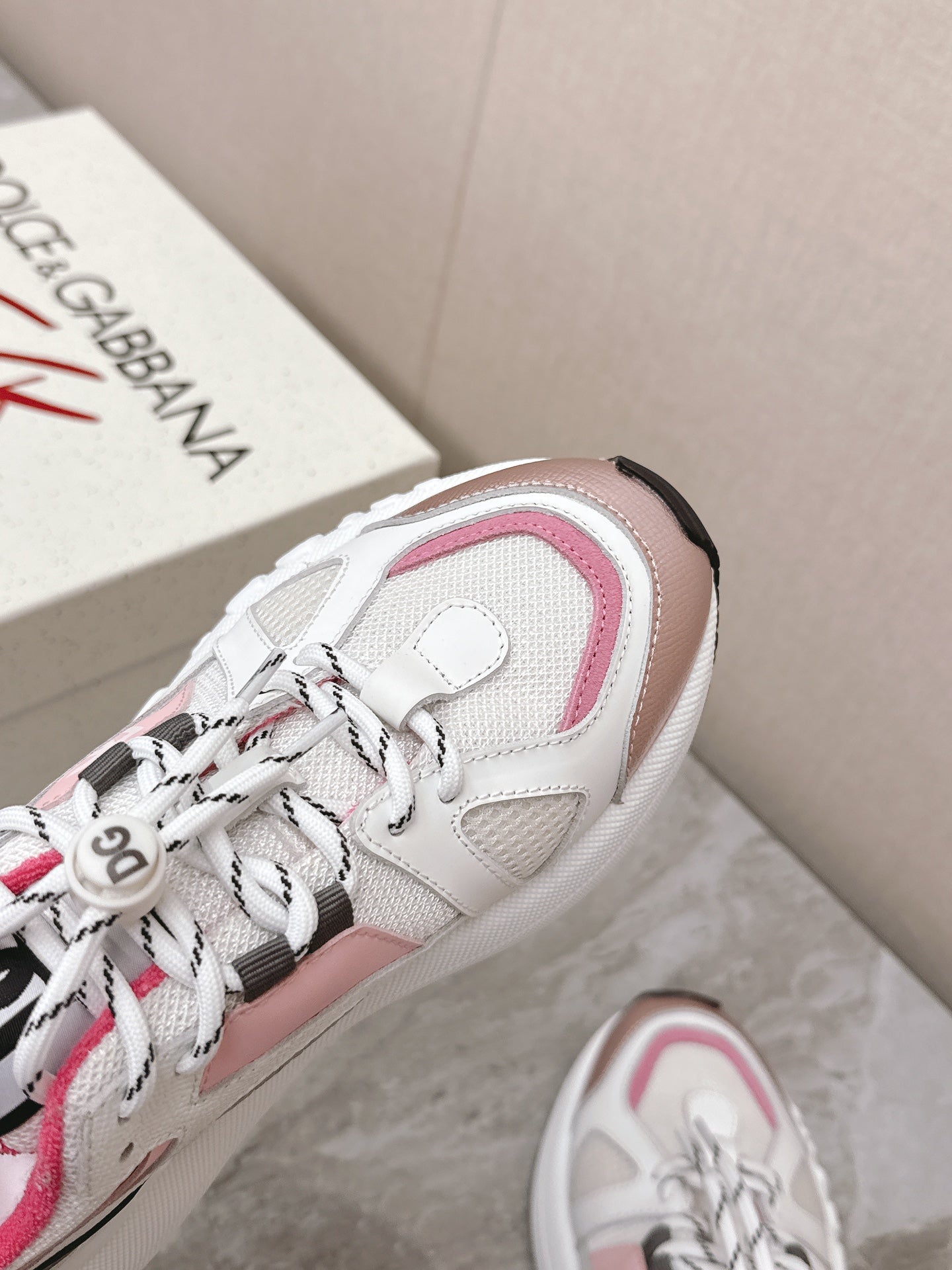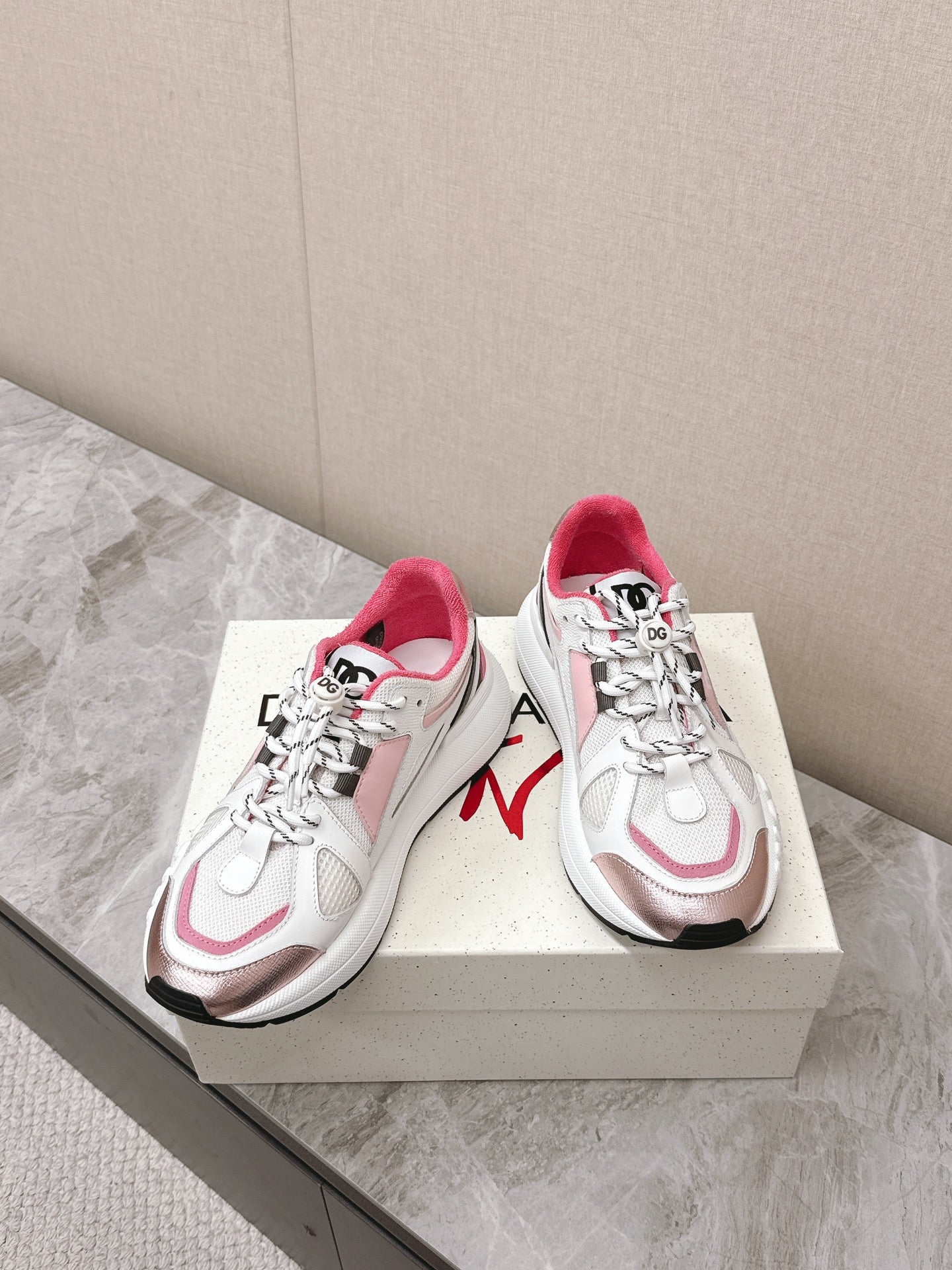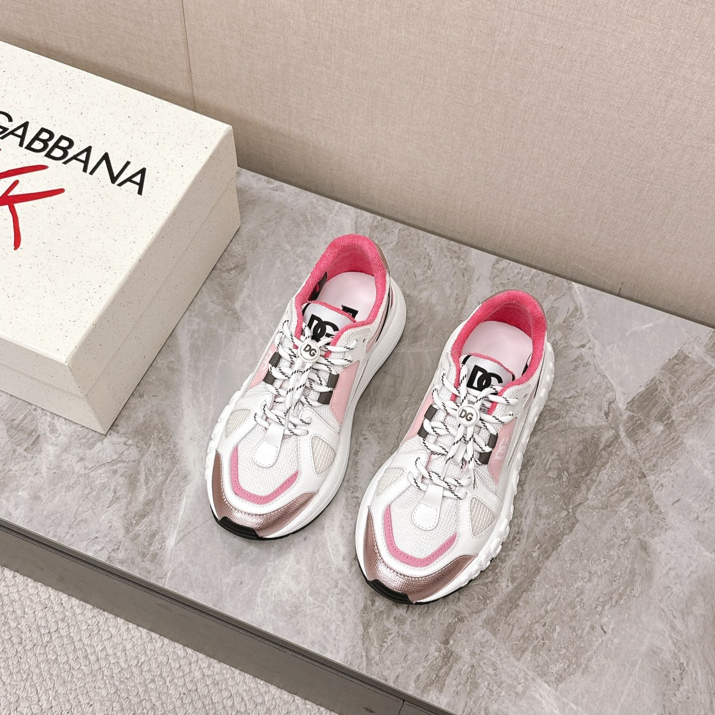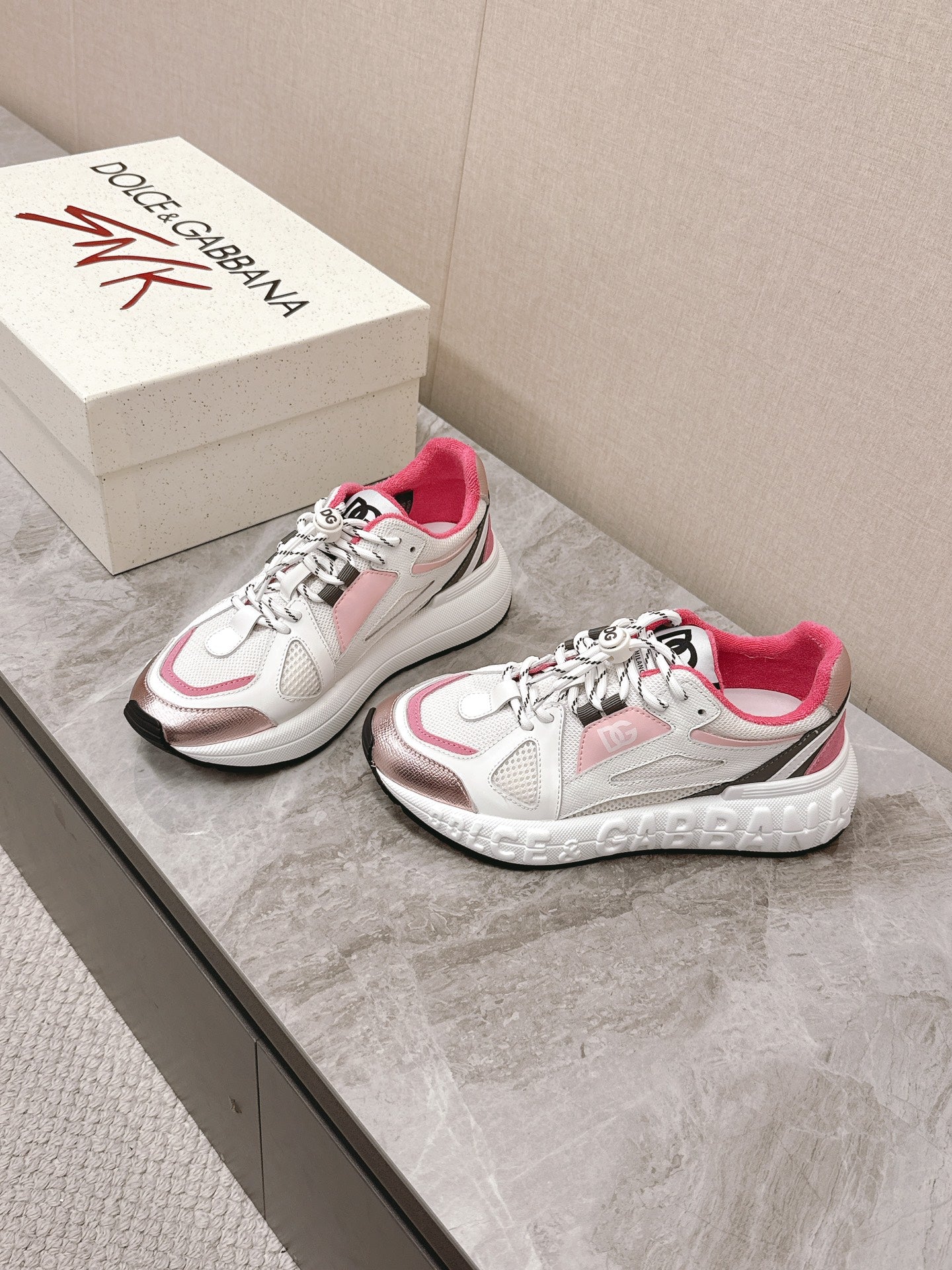DC Chunky Sneakers White Pink Cowhide & Mesh Lining 339131