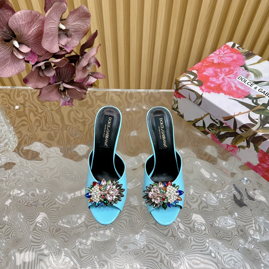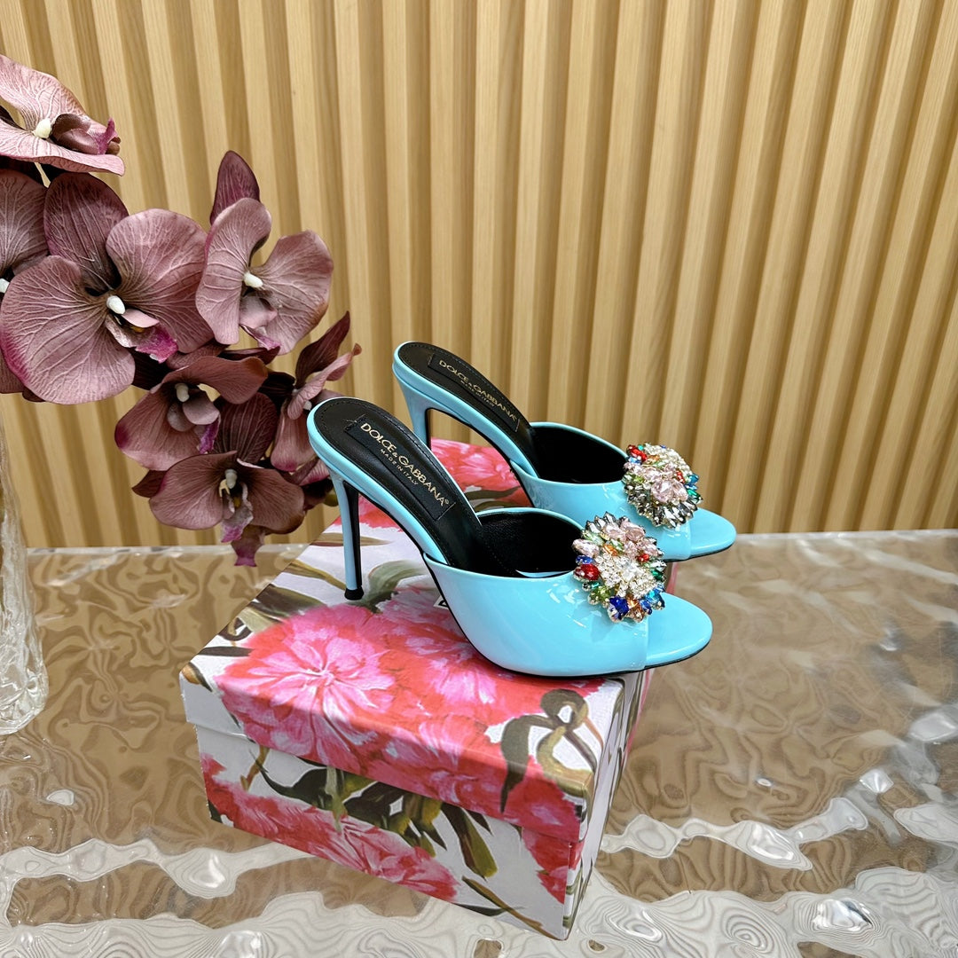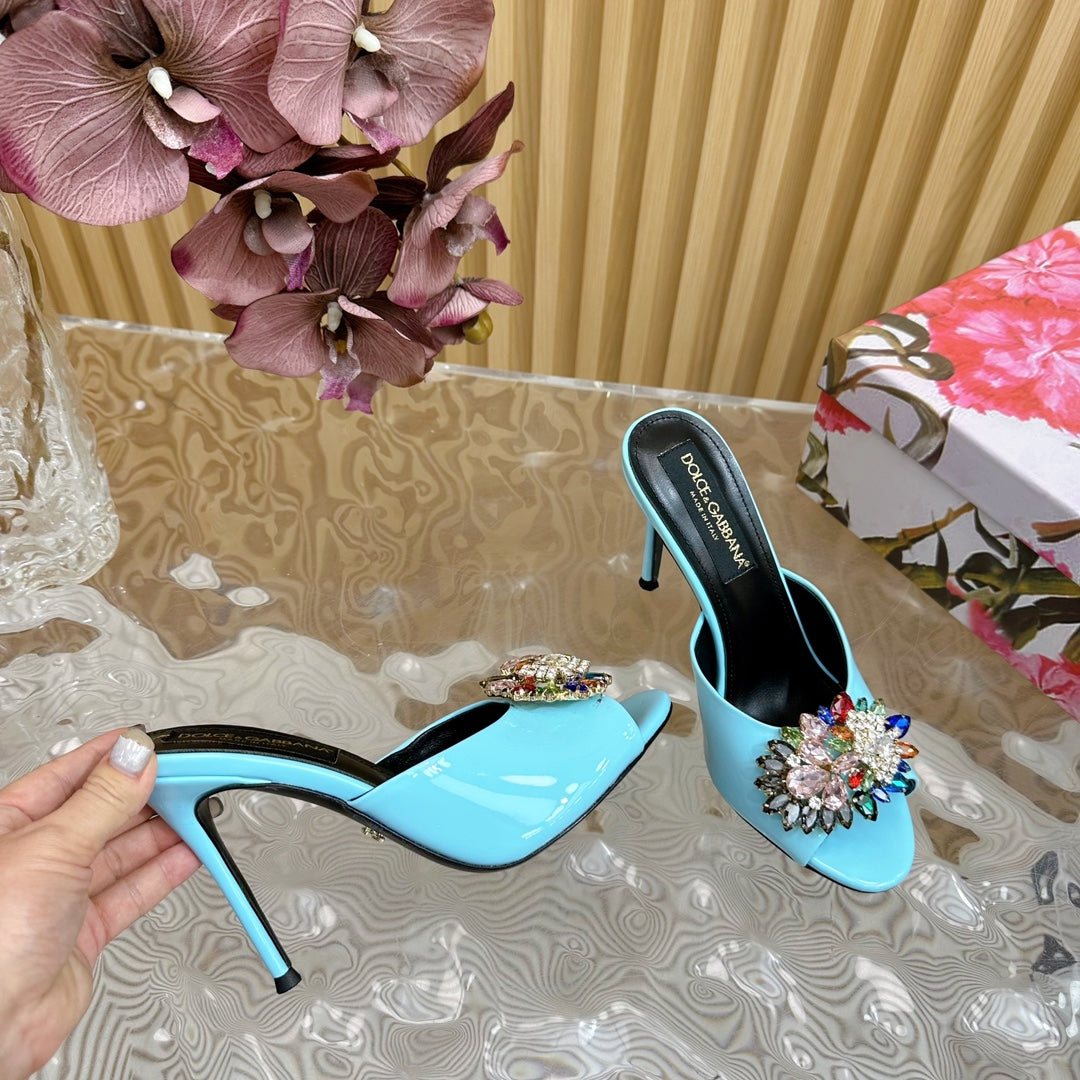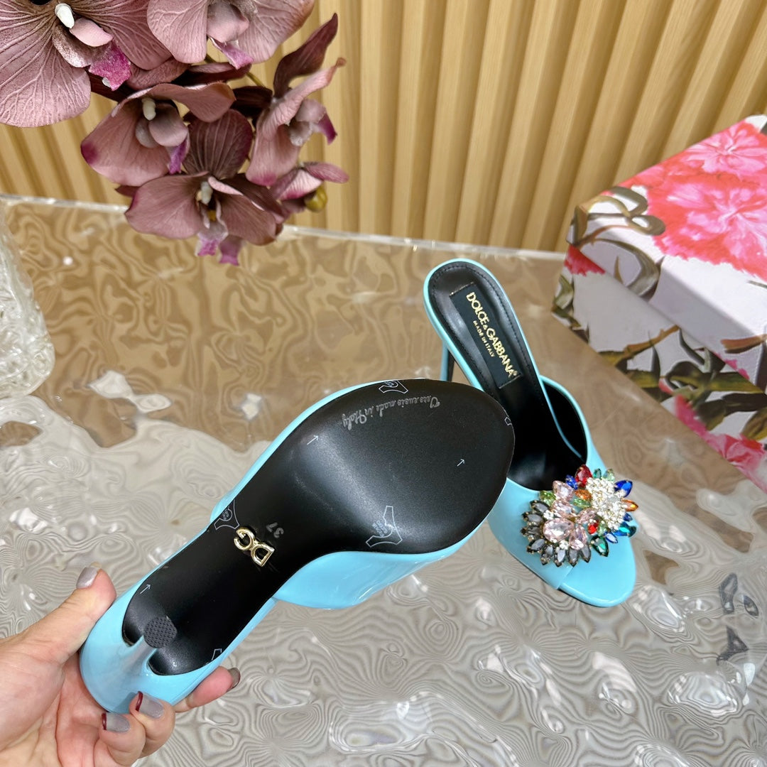 DC Rhinestone Buckle Mules Clear Blue Silk & Sheepskin 926029