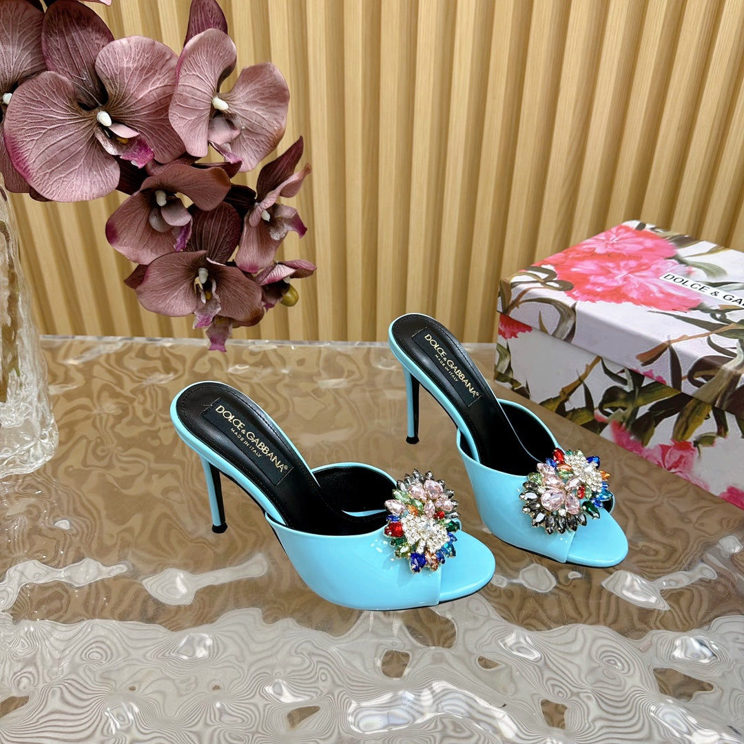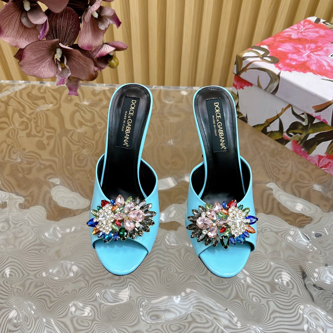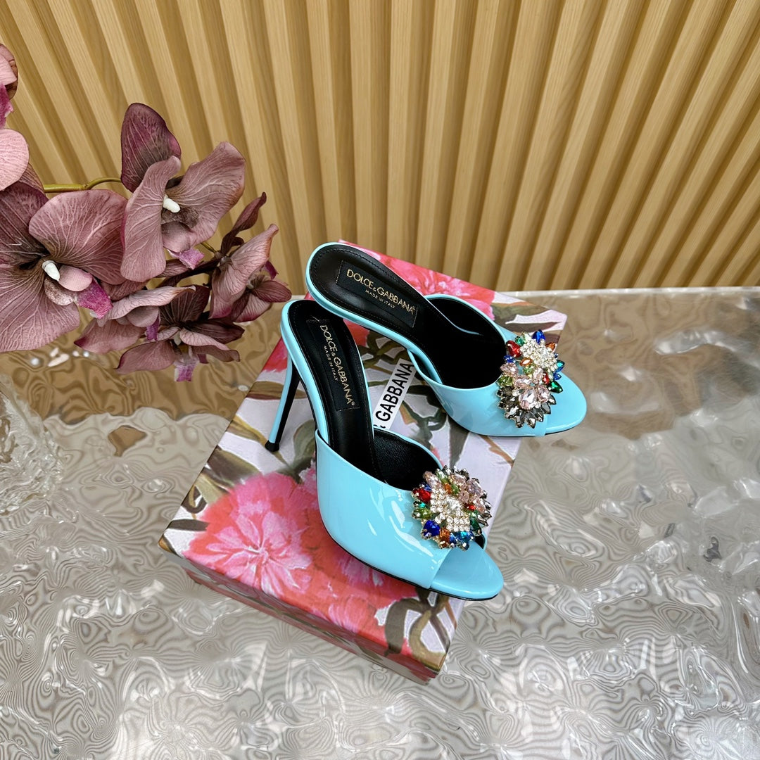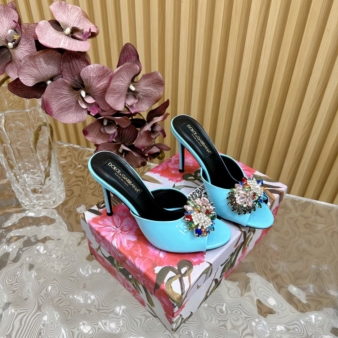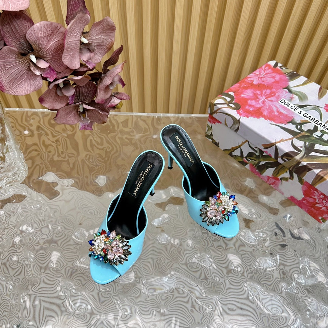 DC Rhinestone Buckle Mules Clear Blue Silk & Sheepskin 926029