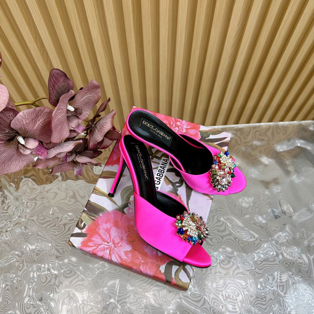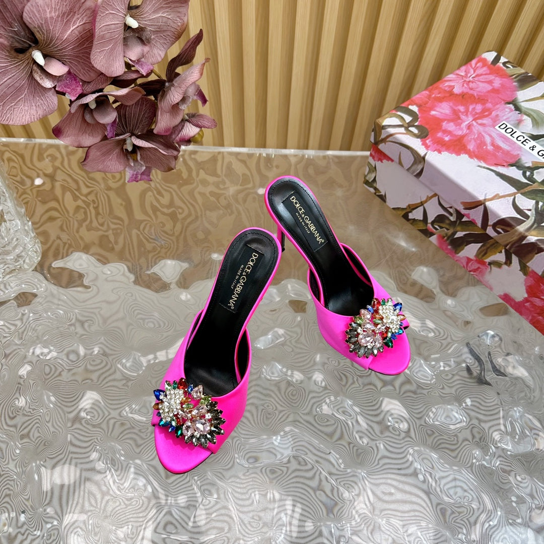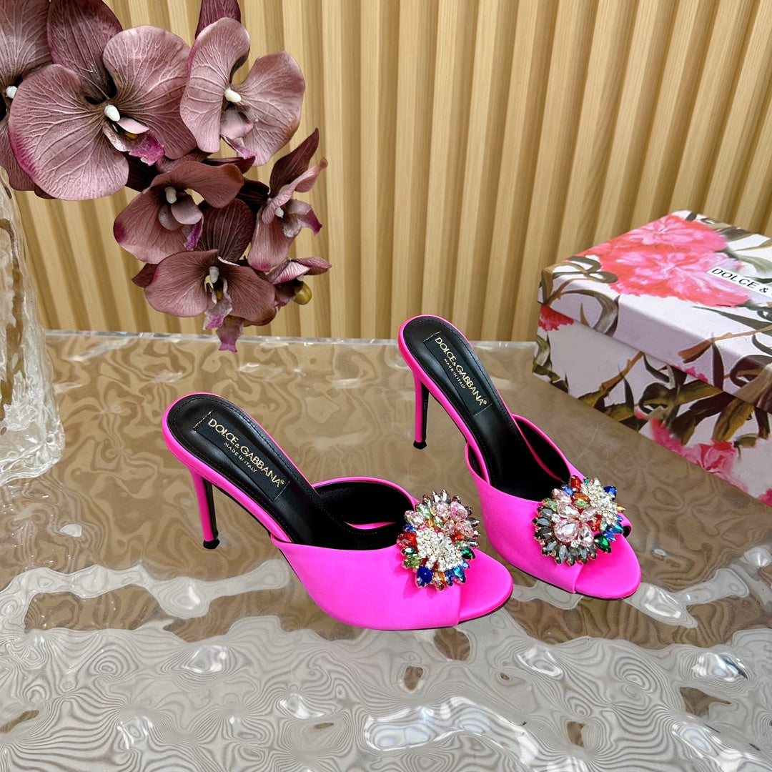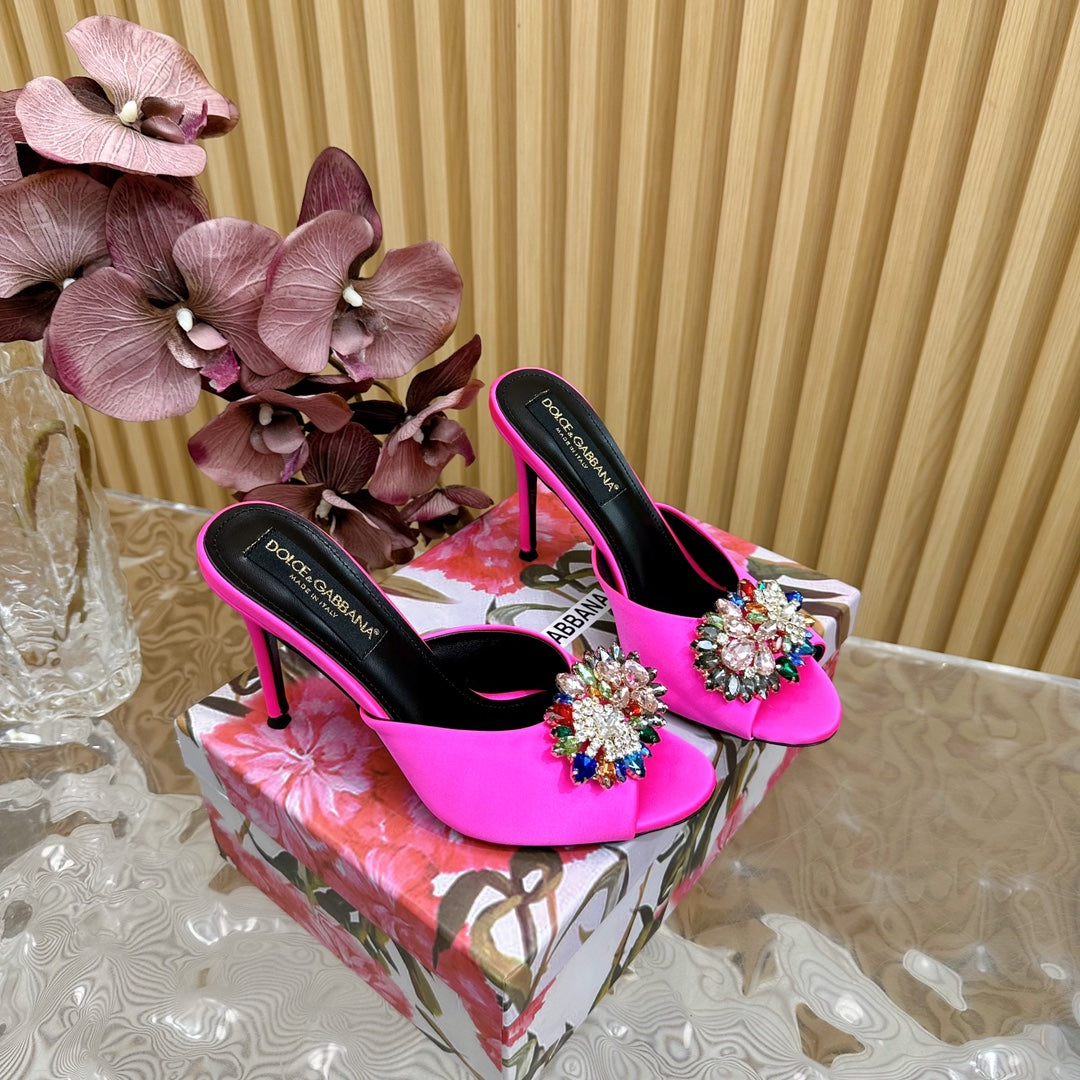 DC Rhinestone Buckle Mules Fuchsia Silk & Sheepskin 926020