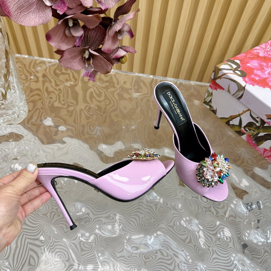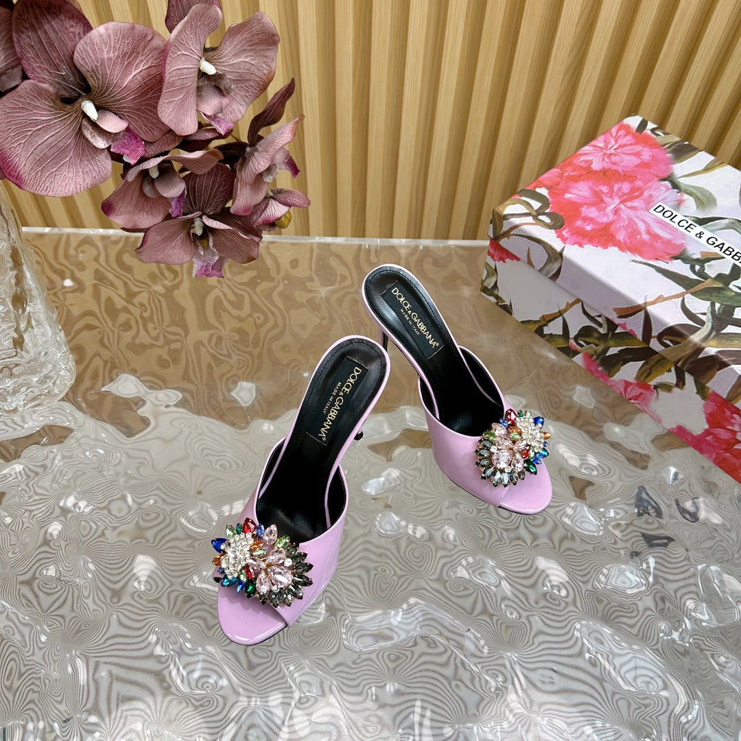 DC Rhinestone Buckle Mules Pink Silk & Sheepskin 926028