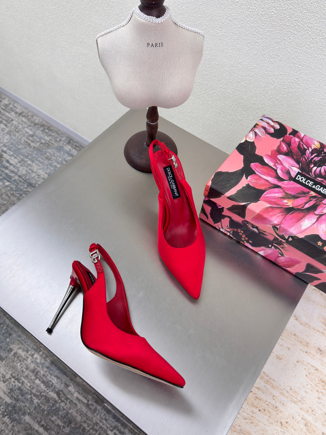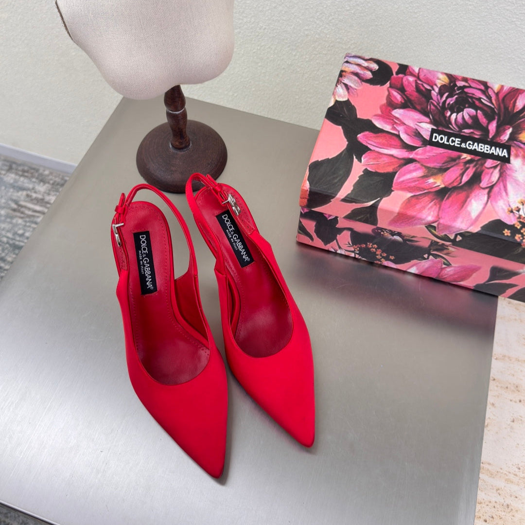 DC Slingback Pumps Red Silk & Sheepskin 343143