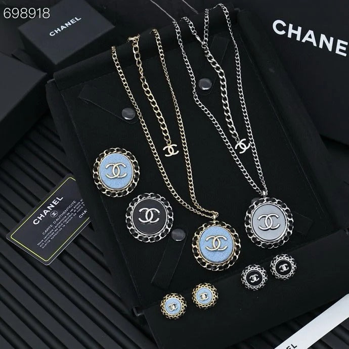 CC 25P STUD EARRINGS IN BLUE DENIM BLACK CALFSKIN-THREADED BUTTON