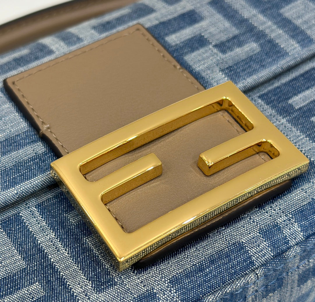 BAGUETTE MINI 19 BAG IN CERULEAN BLUE MONOGRAM DENIM WITH GOLD HARDWARE