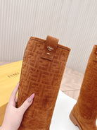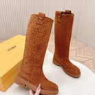 Fendi 25 High Boots Caramel Brown Suede 500939