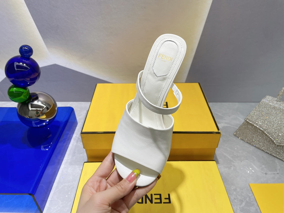 FENDI BAGUETTE SLIPPERS IN WHITE LAMBSKIN WITH GOLD HARDWARE