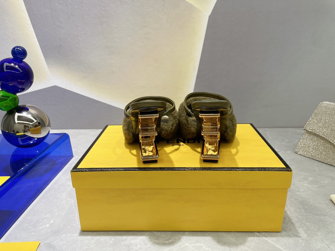 FENDI FIRST HIGH HEEL 95 MM SANDAL IN OLIVE GREEN MINK FUR
