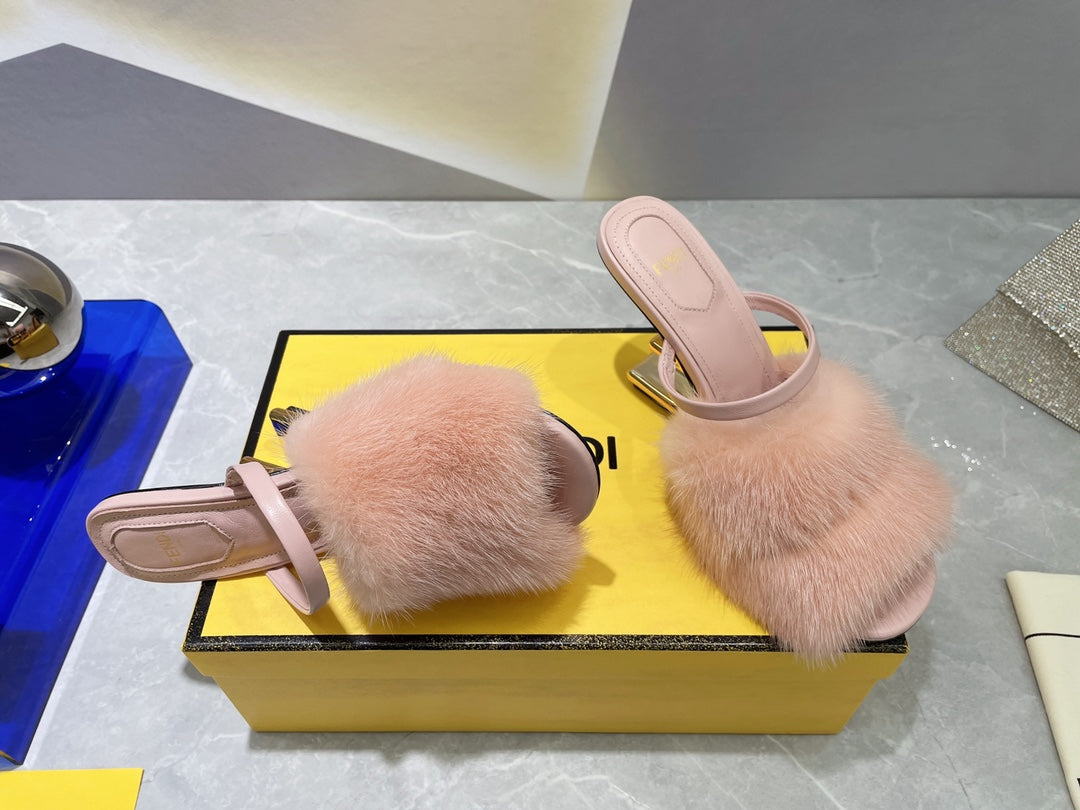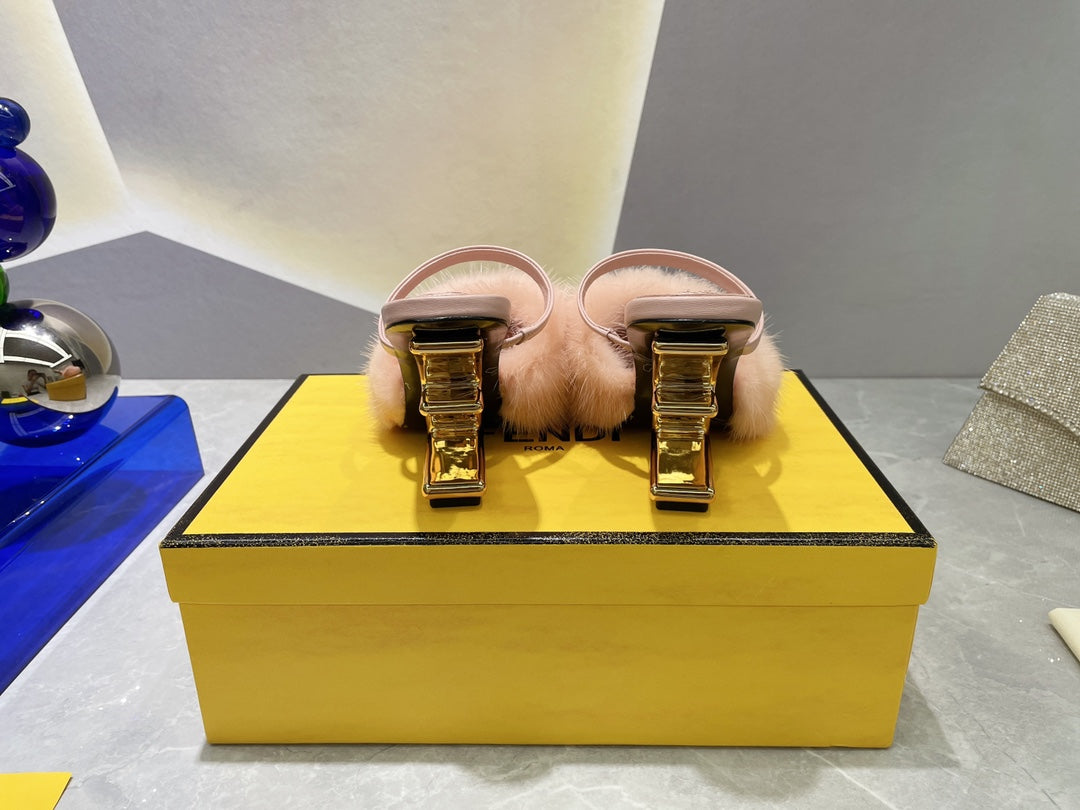 FENDI FIRST HIGH HEEL 95 MM SANDAL IN LIGHT PINK MINK FUR