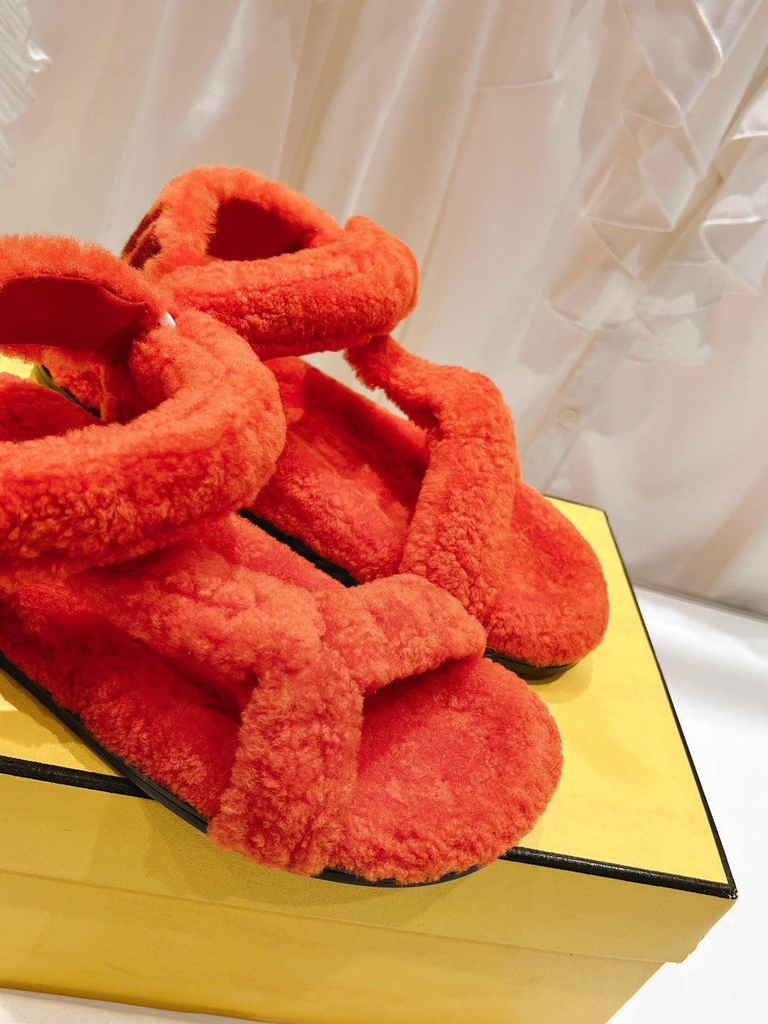 FENDI DAD SANDAL IN PASSION RED FLEECE