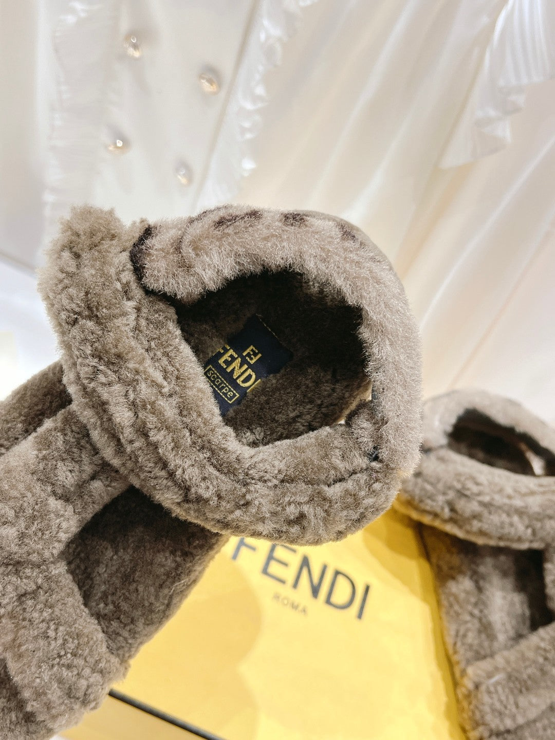 FENDI DAD SANDAL MULE IN BRONZE BROWN SUEDE WITH WHITE FLEECE
