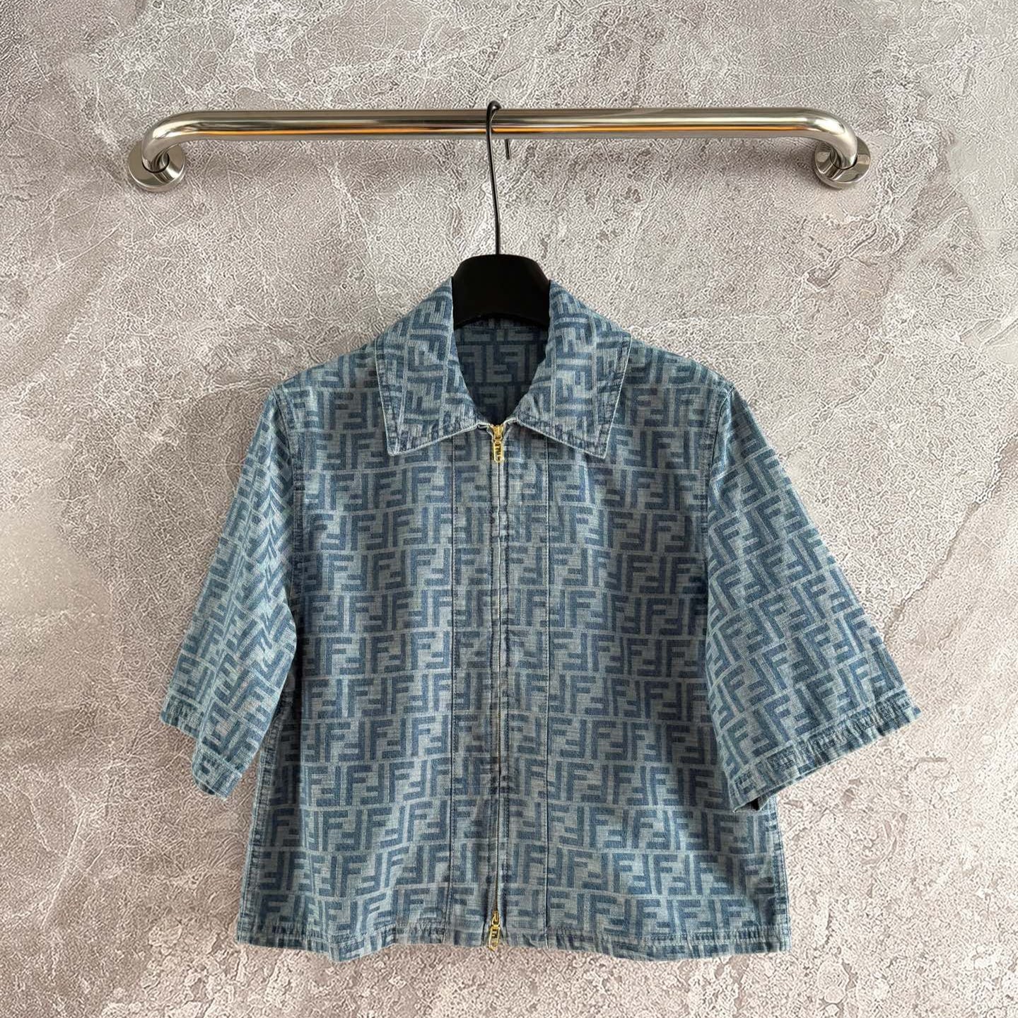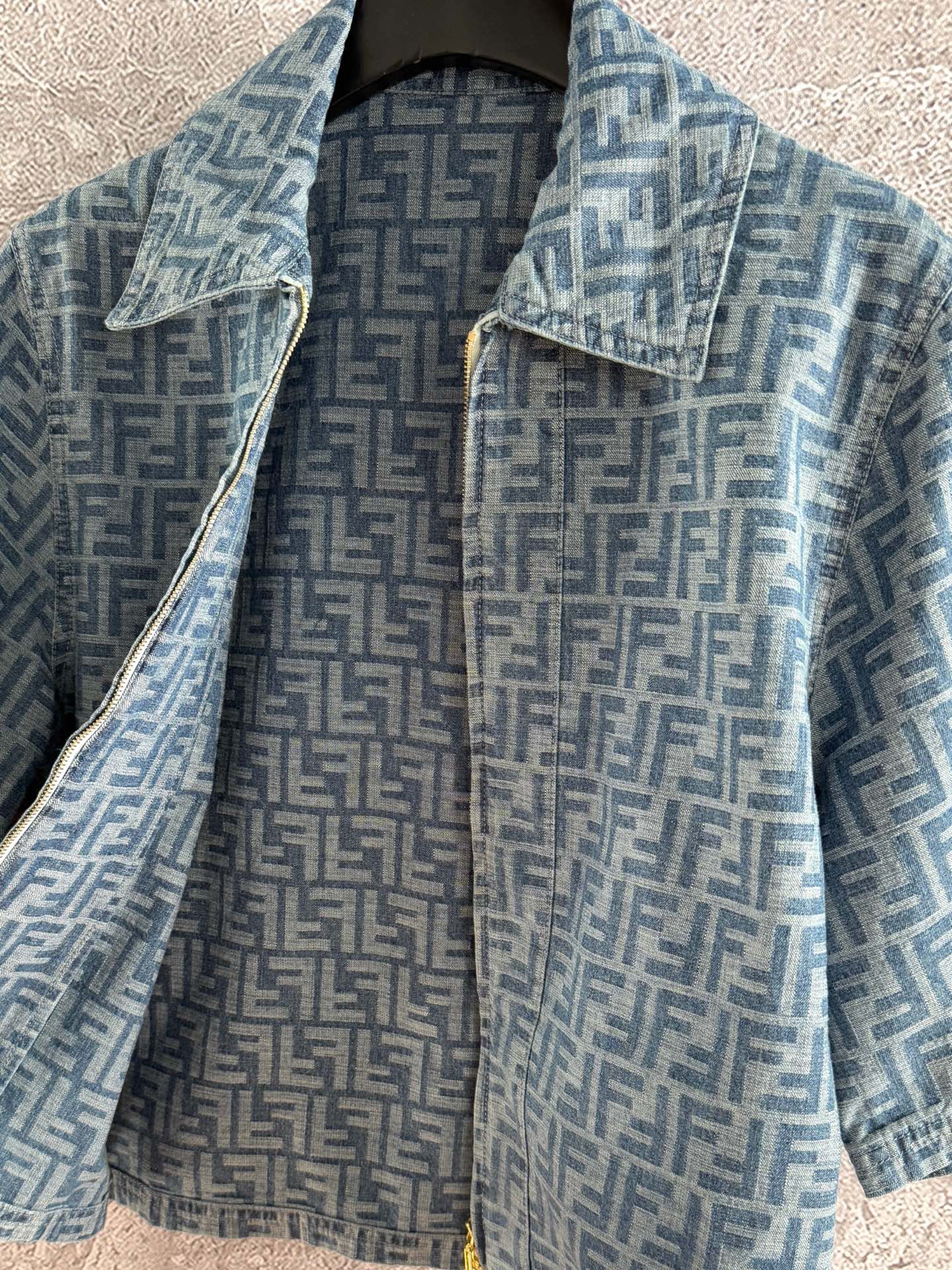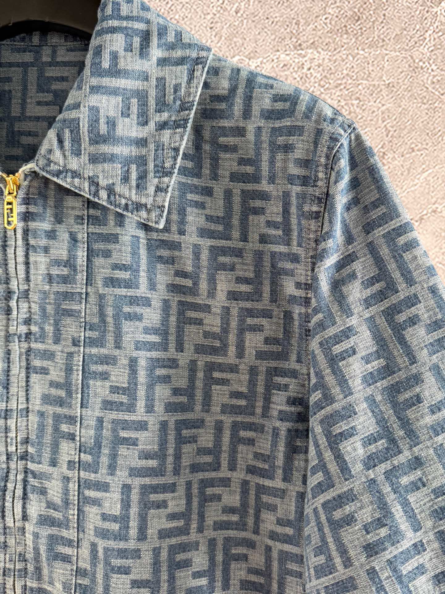 Fendi Old flower denim jacket Blue Gray Cotton Linen