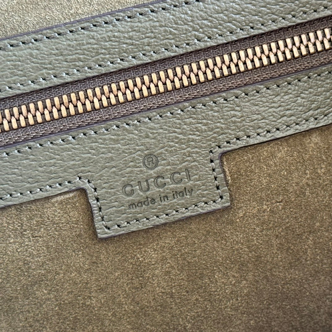GG FW25 Ophidia Large Tote Bag 30 Dark Green Suede Cowhide