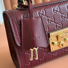 GG Padlock Handbag 20cm Burgundy GG Pattern Leather