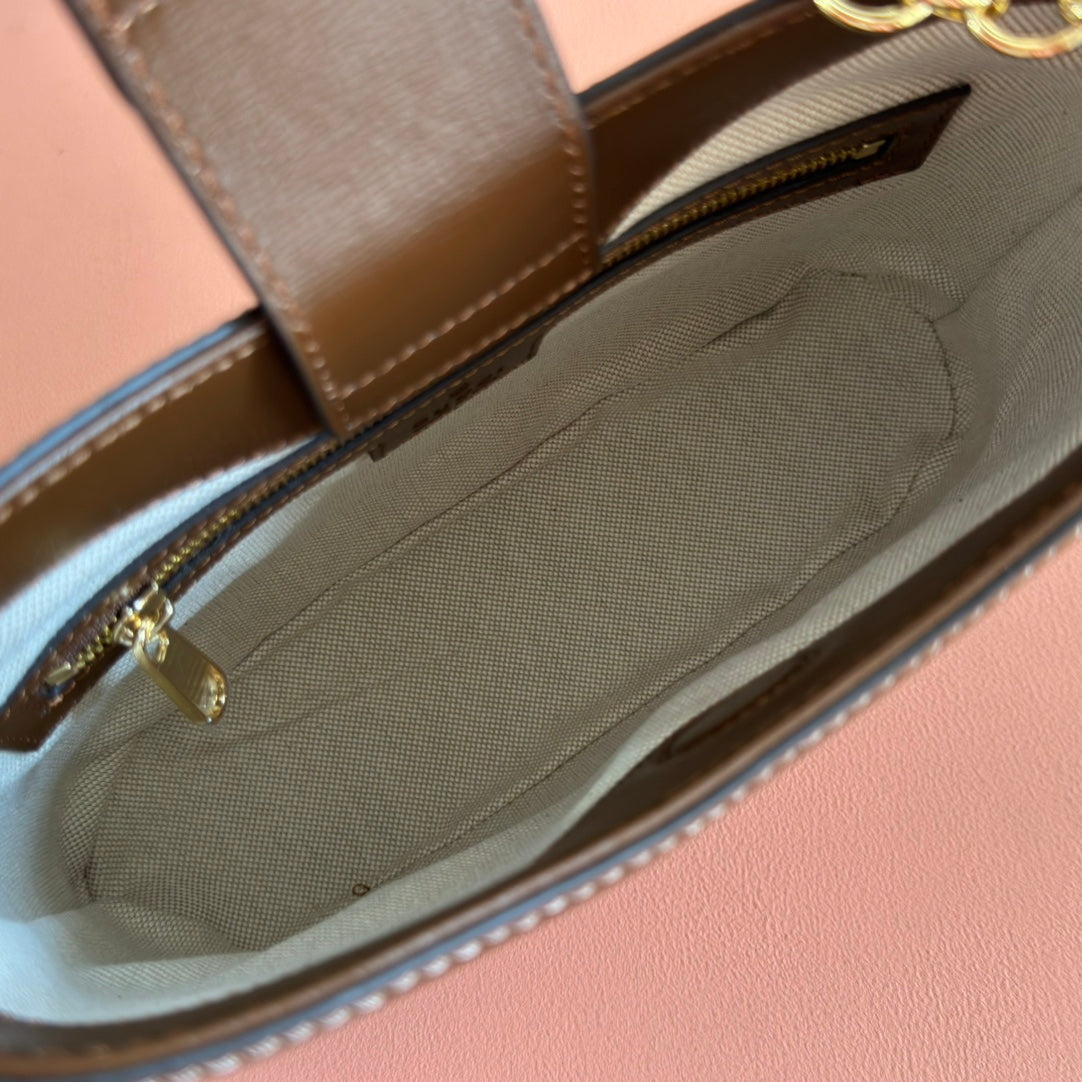 Gucci Large Interlocking G Shoulder Bag 25cm Chocolate Beige GG Supreme Canvas Leather 273677