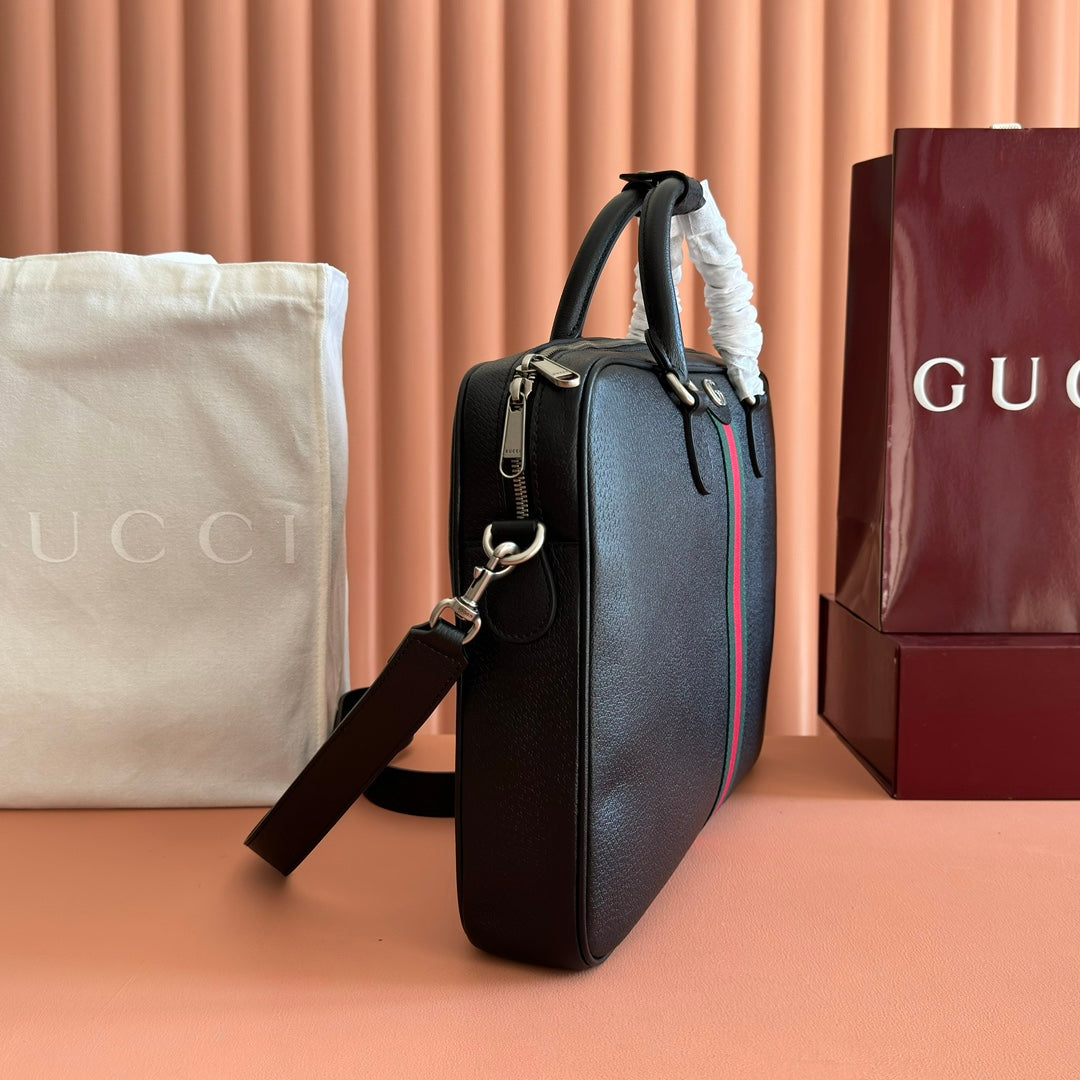 Gucci Ophidia Large Briefcase Black Leather Trim Cotton