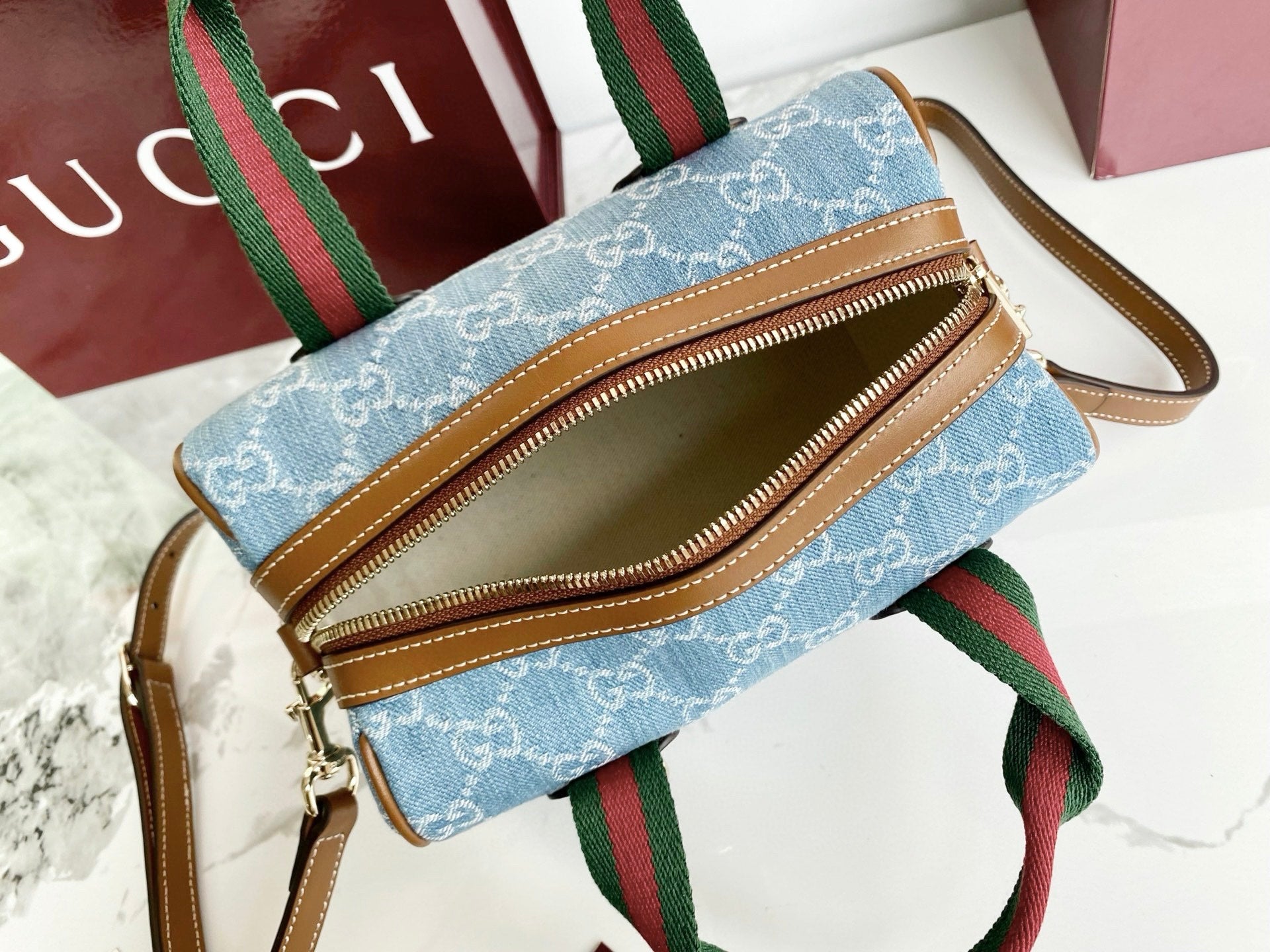 Gucci 25 Giglio 25cm Bag Blue Denim Leather 292387